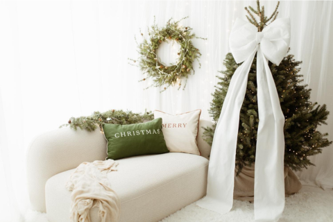 Beżowa kokarda na choinkę 60×50 cm XL duża wstążki 200cmx2