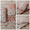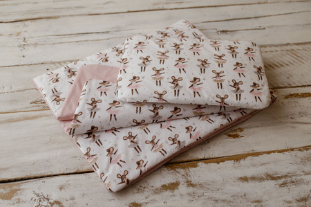 Zestaw wykonano z 100% certyfikowanej bawełny (OEKO-TEX Standard 100), która jest bezpieczna dla skóry dziecka. Wypełnienie kocyka to lekkie i puszyste włókno antyalergiczne o gramaturze 150g/m², z możliwością wyboru innego ocieplenia (150g lub 200g).