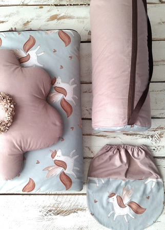 Śpiworek do przedszkola z falbanką 140x75cm skrzydlaty jednorożec