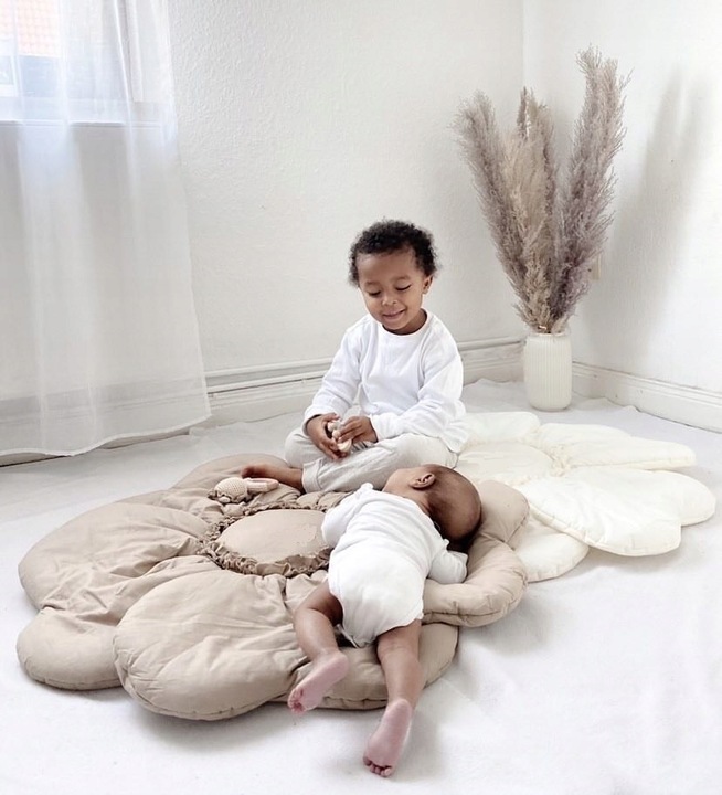 Bawełniana mata kwiat 5 dla dzieci do zabawy dekoracja pokoju ecru