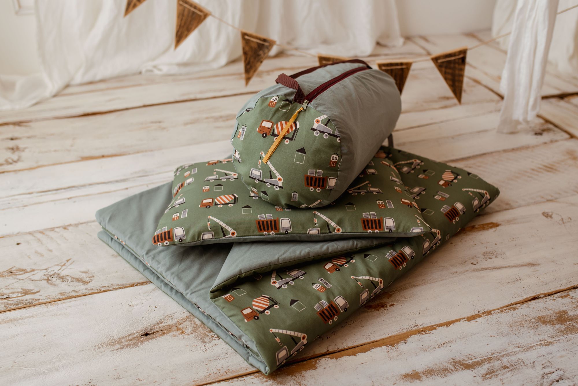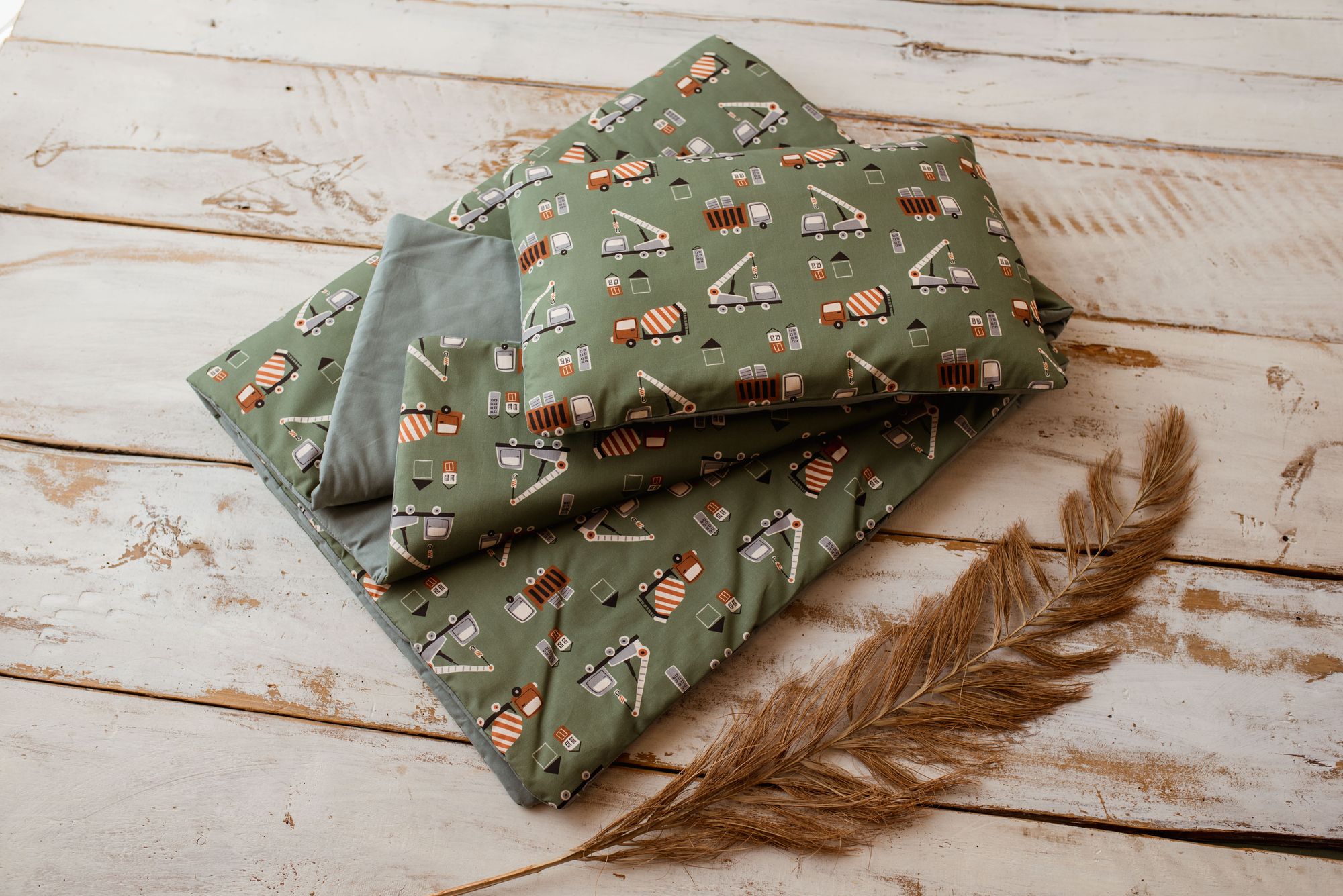 Bawełniany kocyk auta 3w1 zestaw szałwia junior