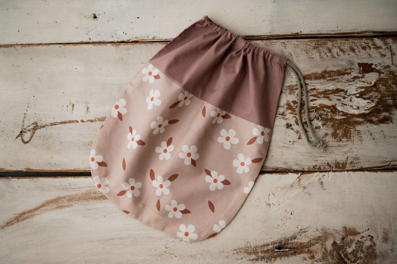 Bawełniany worek w kwiatuszki na rzeczy zamienne i buciki do przedszkola retro