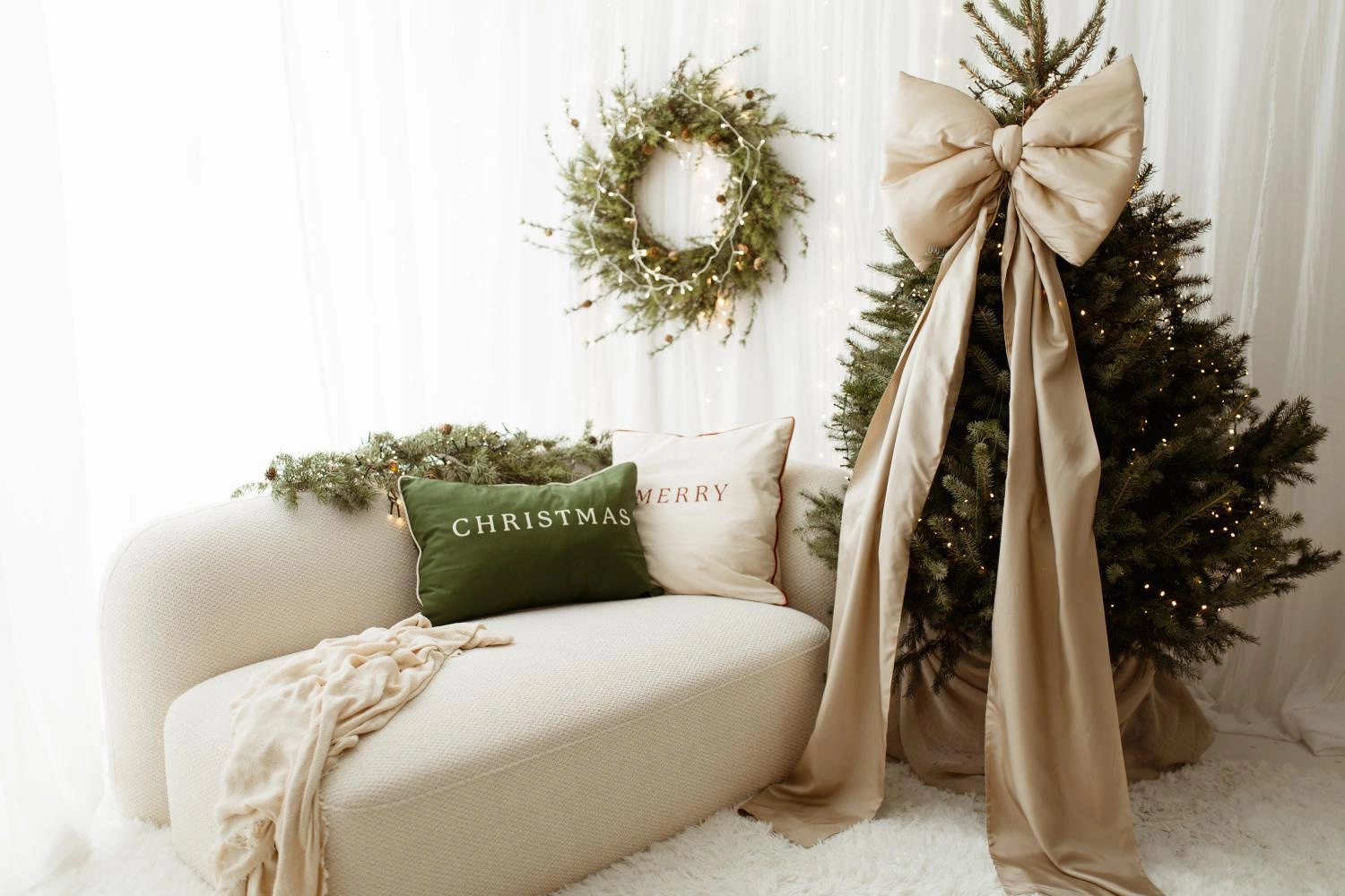 Beżowa kokarda na choinkę 60×50 cm XL duża wstążki 200cmx2