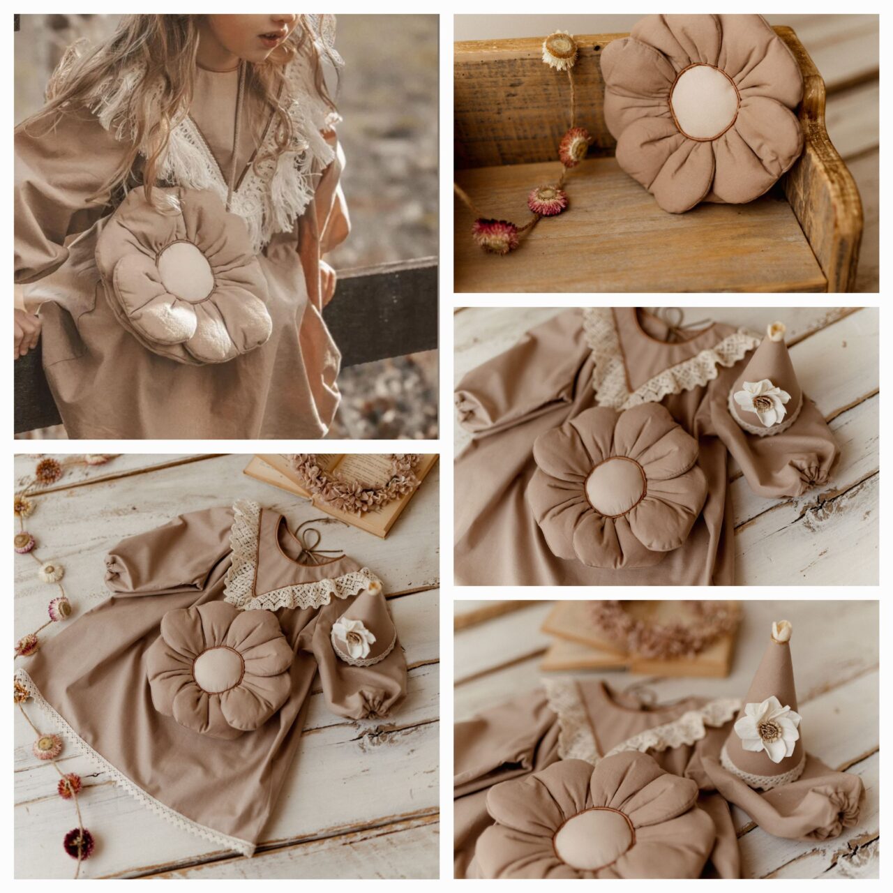 Beżowa torebka dla dziewczynki bawełniana kwiatuszek boho