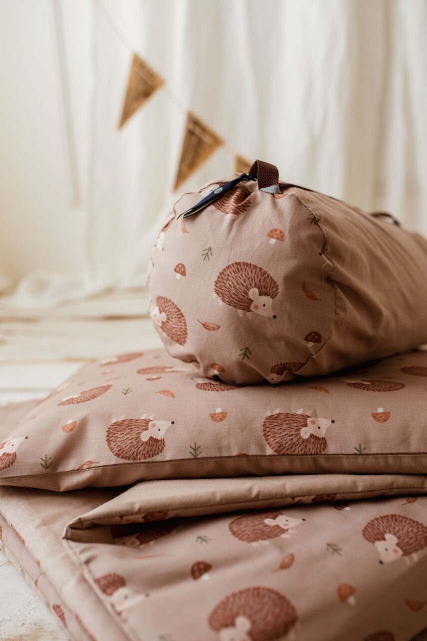Do suwaka dołączona została urocza tasiemka , aby malutkie rączki mogły go wygodnie zamykać i otwierać:) W zestawie znajduje się poszewka na podusie wraz z wypełnienieniem 🙂 , a całość zapakowana jest w wygodny i poręczny pokrowiec, pasujący do zestawu.