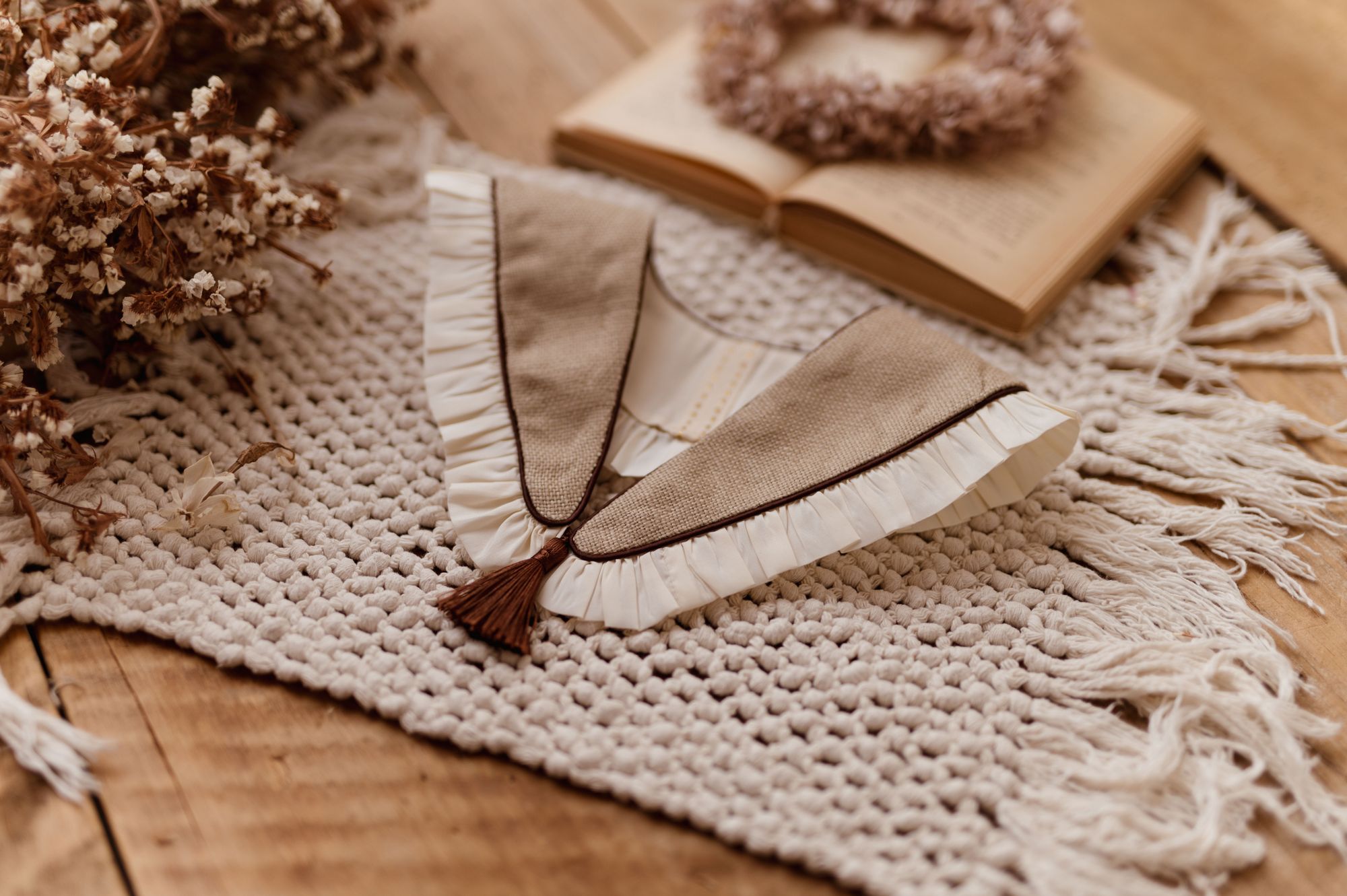 Beżowy kołnierzyk z falbanką damski anielka