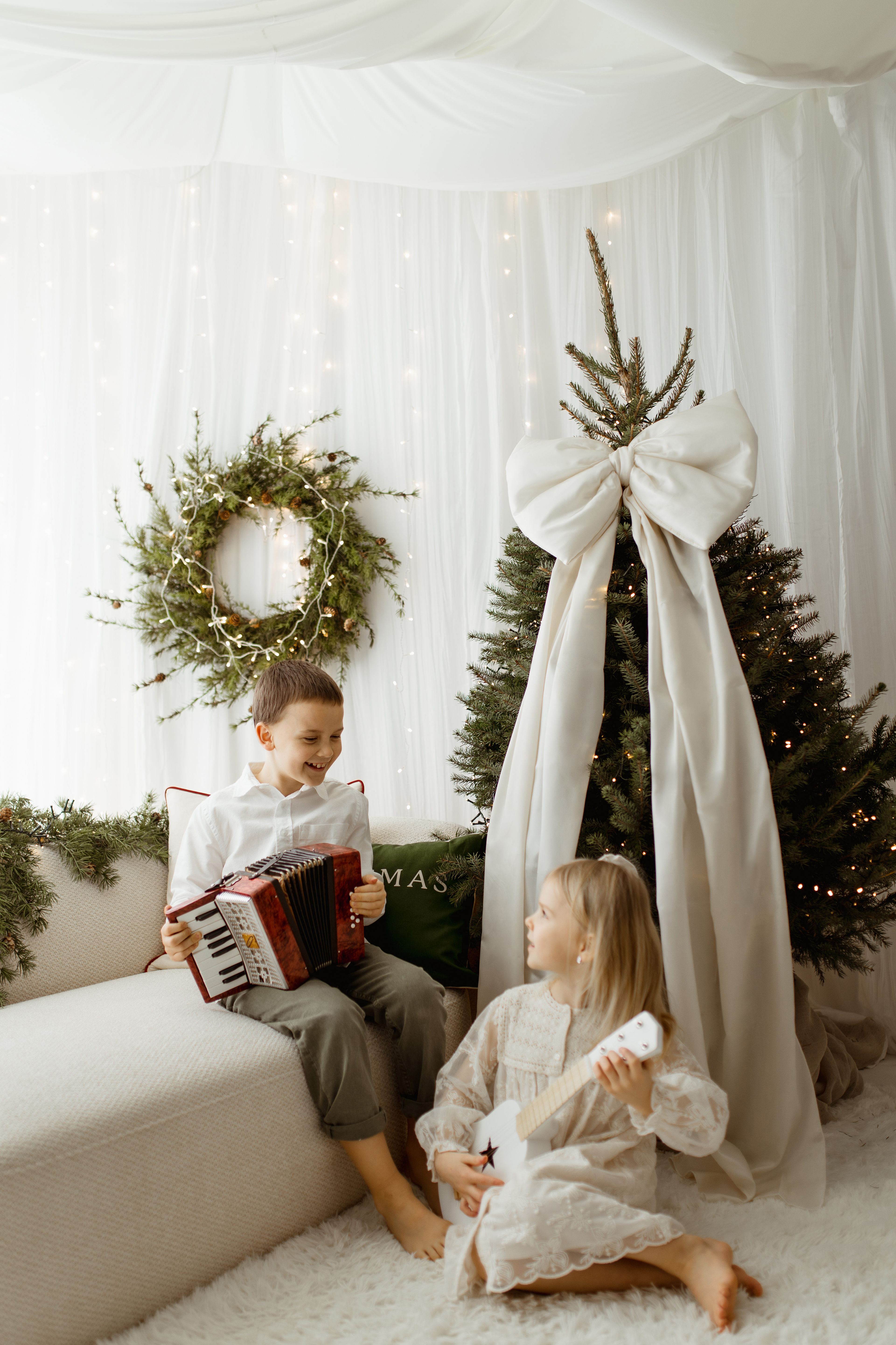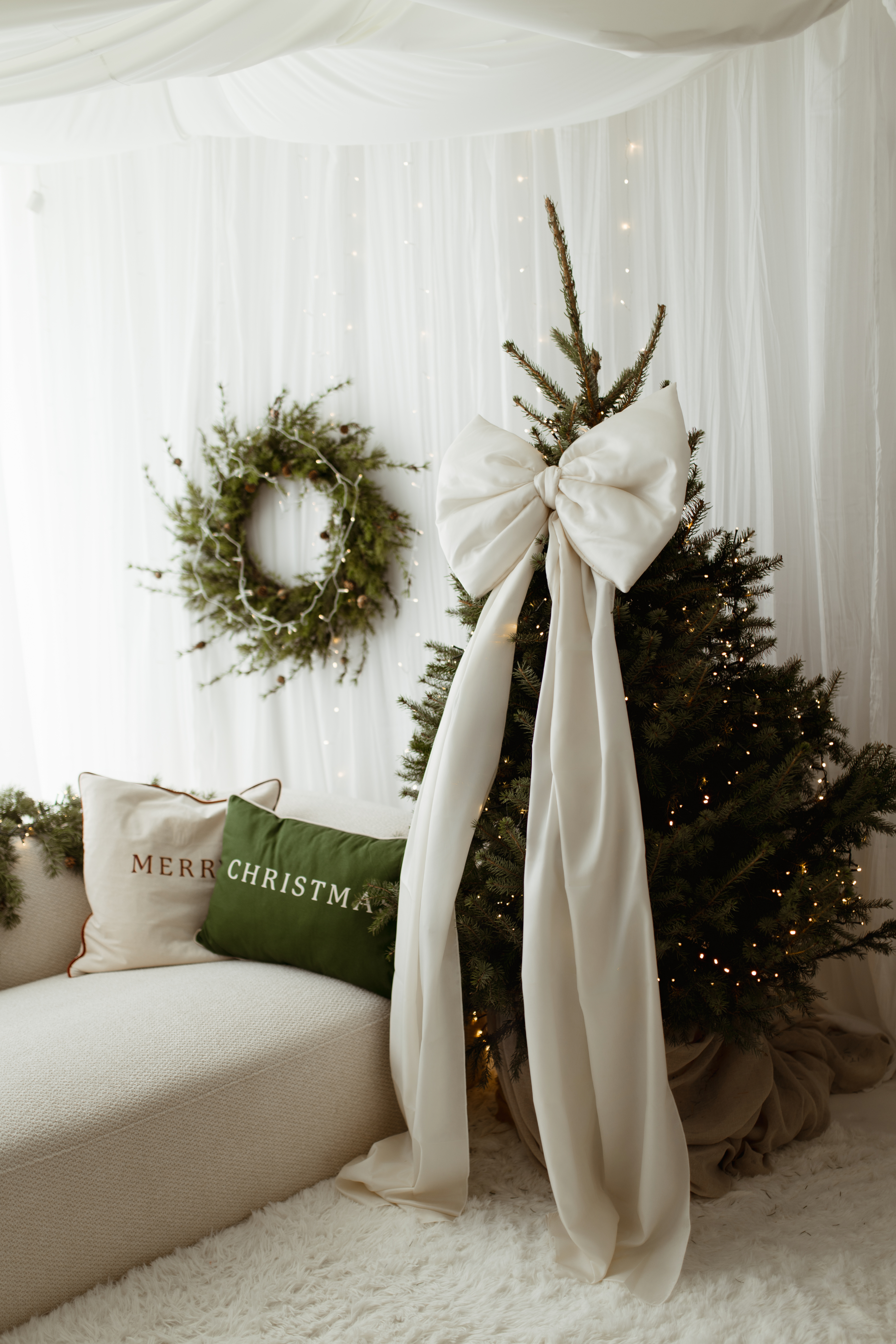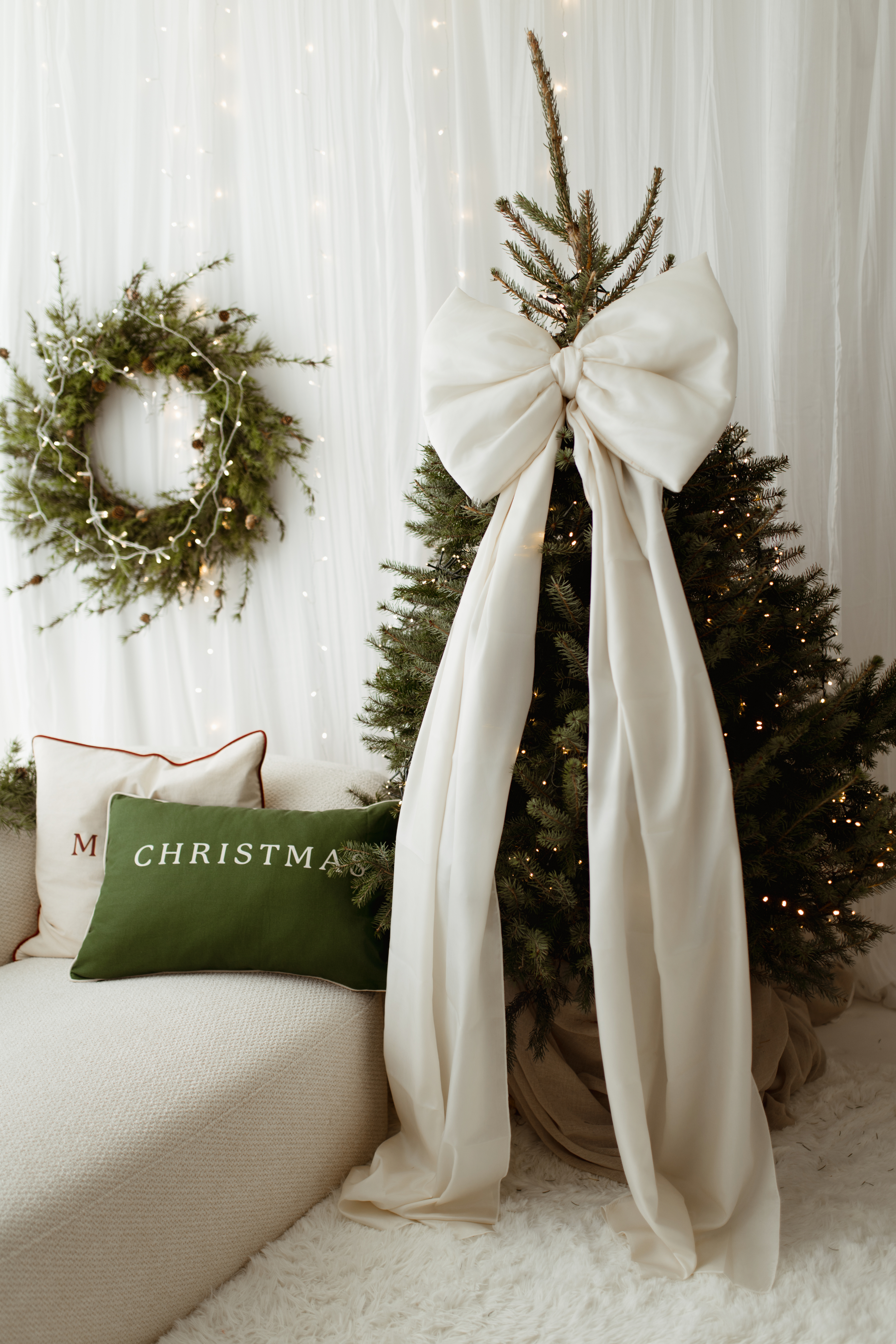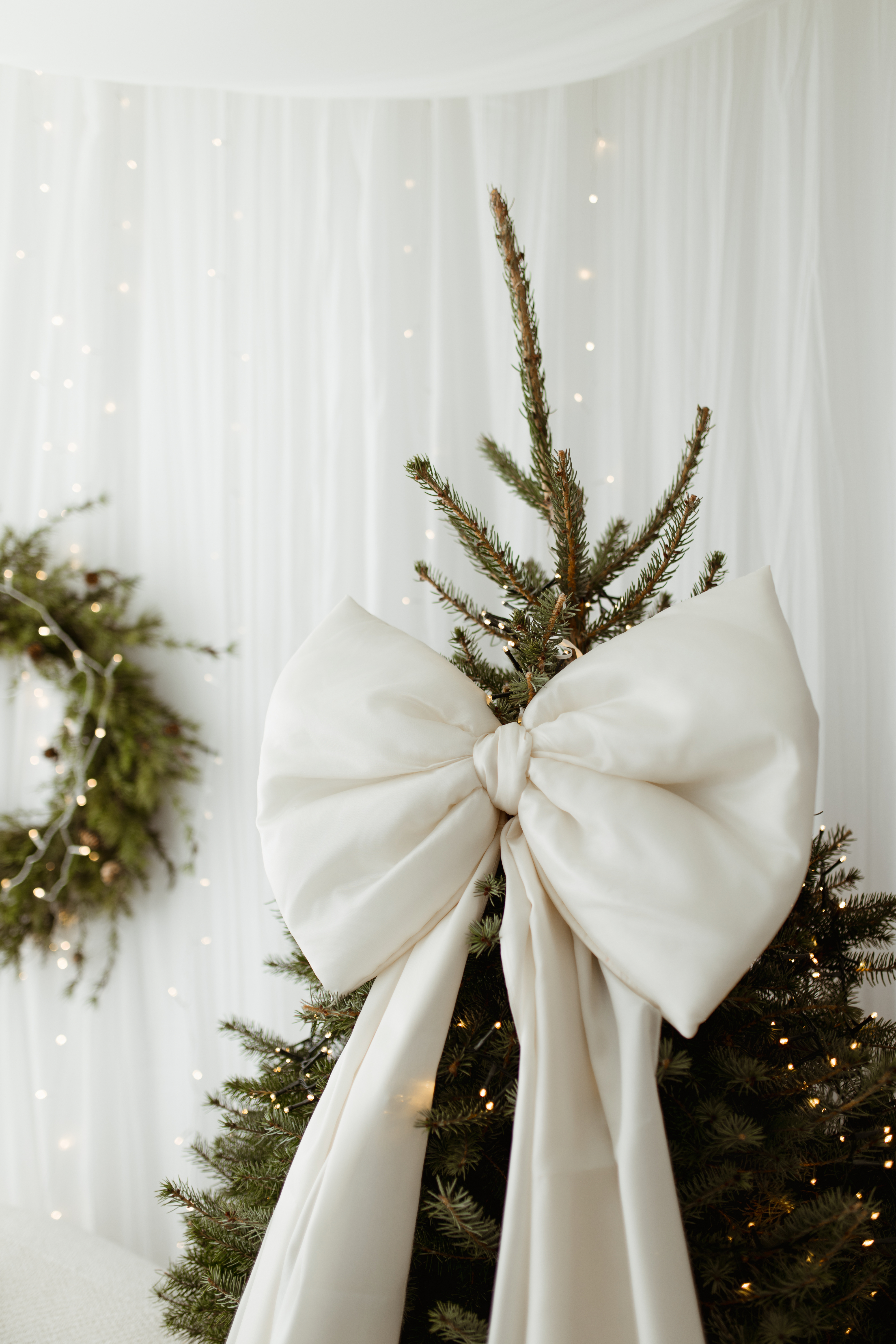 Kokarda na choinkę ecru 50×40 cm L średnia wstążki 150cmx2