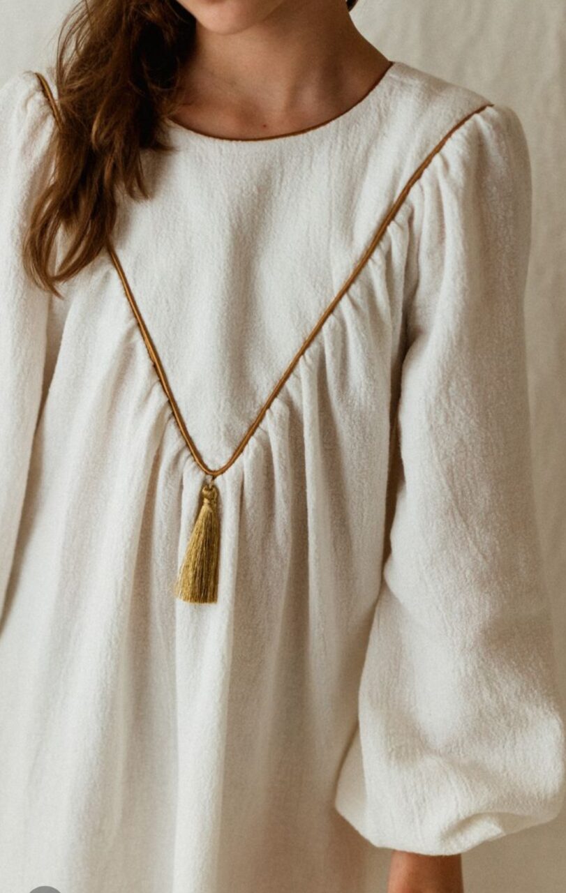Lniana sukienka damska Ta wyjątkowa sukienka z litewskiego lnu to idealna propozycja dla kobiet, które cenią sobie połączenie wygody, ponadczasowego fasonu i delikatnych, romantycznych detali.