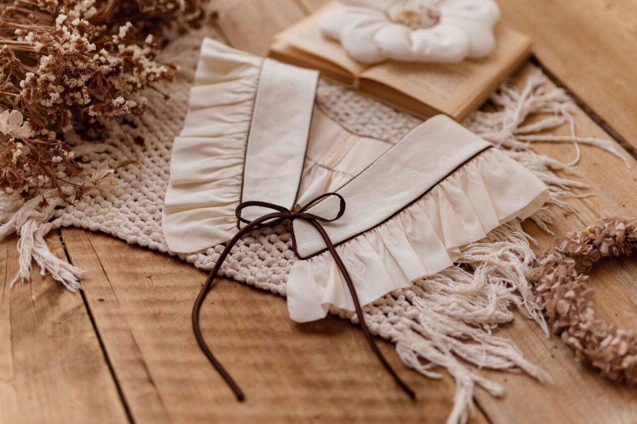 Biały kołnierzyk damski zawiązywany lniany z falbanką Antonina milk