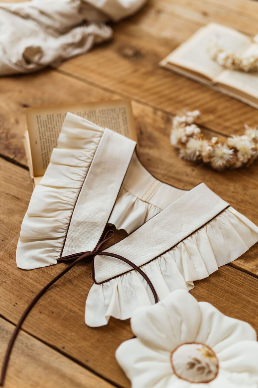 Biały zawiązywany kołnierzyk lniany dla dziecka Antonina milk