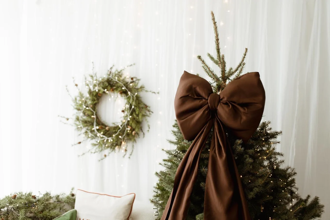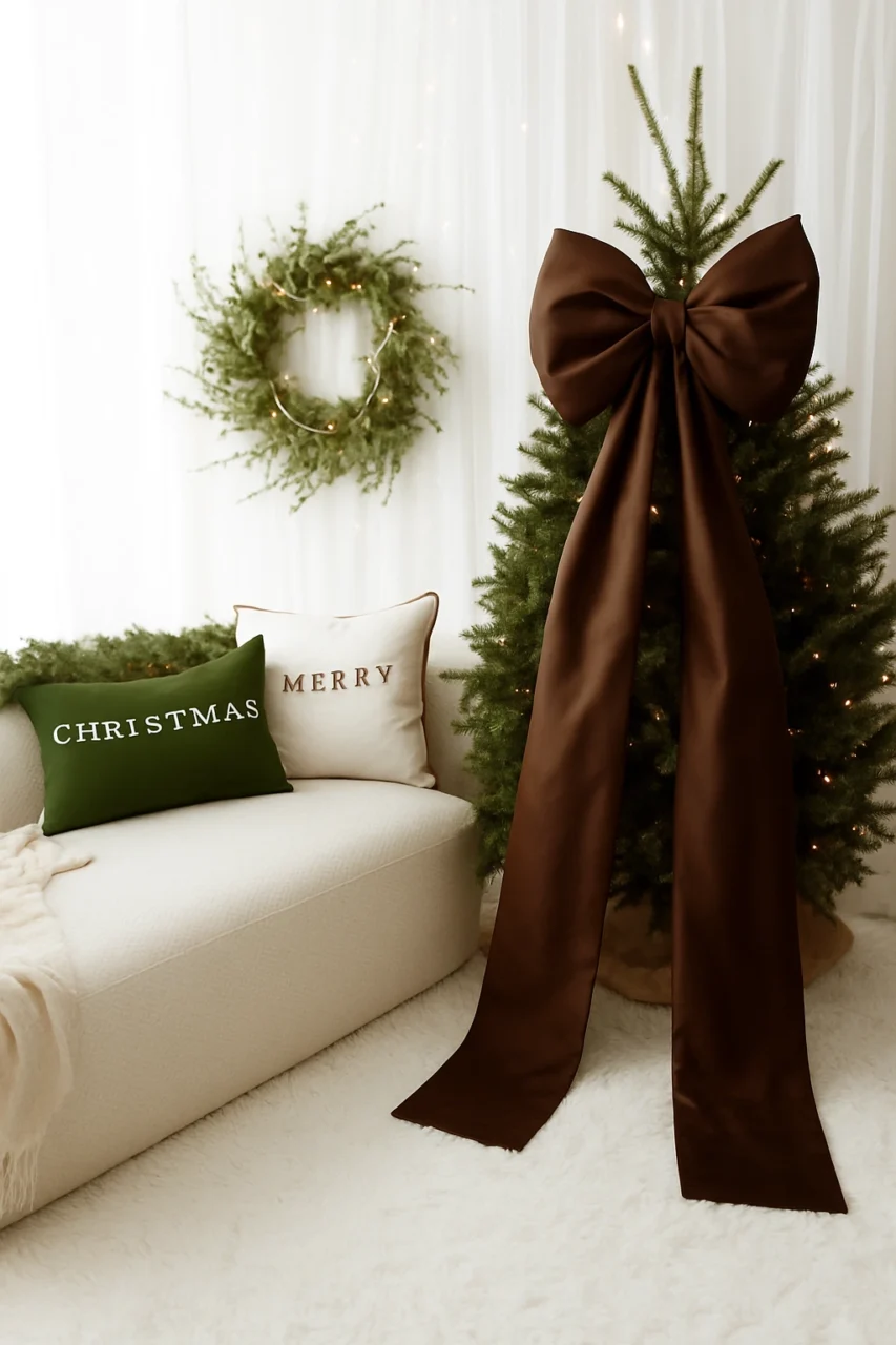 Brązowa kokarda na choinkę 60×50 cm XL duża wstążki 200cmx2