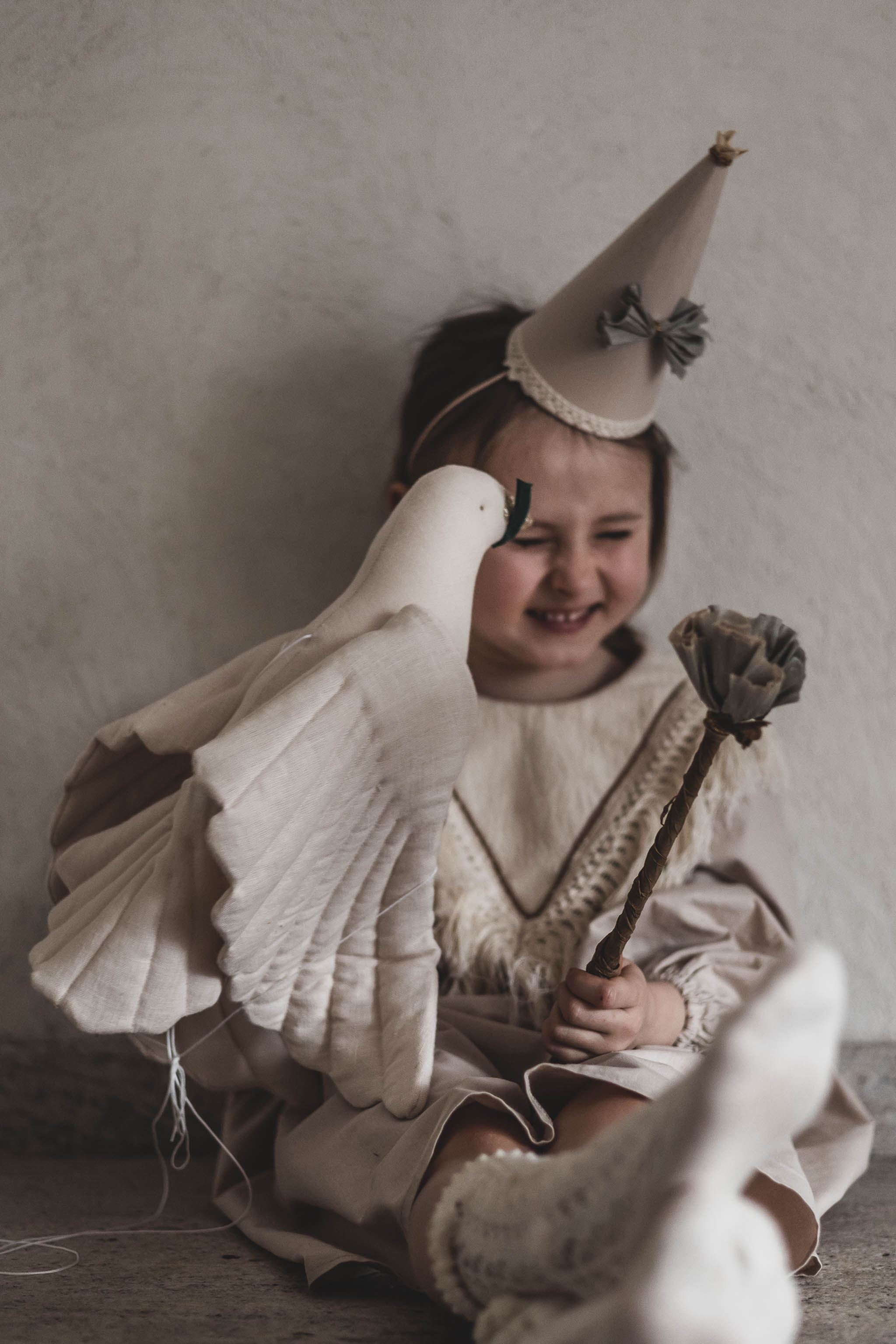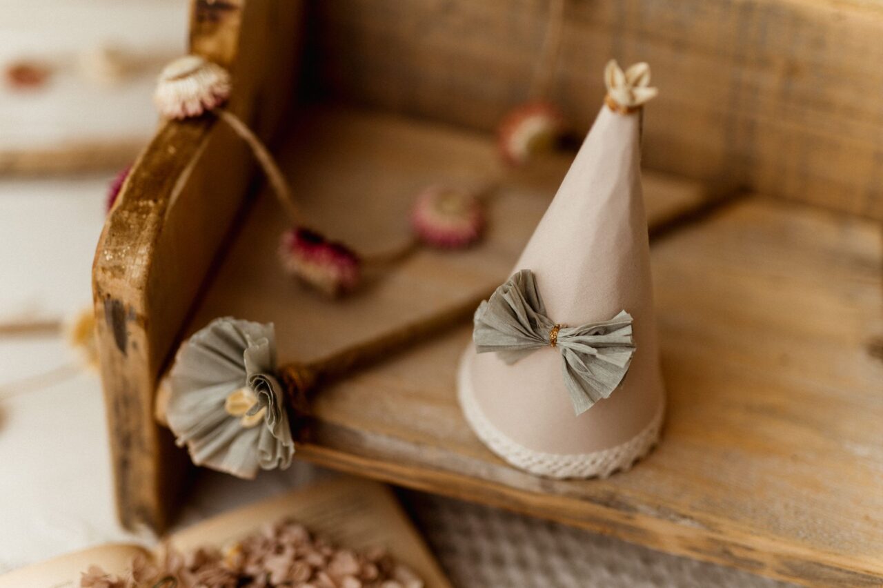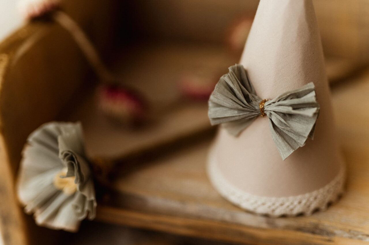 Czapeczka urodzinowa boho hand made natural beż z kokardką