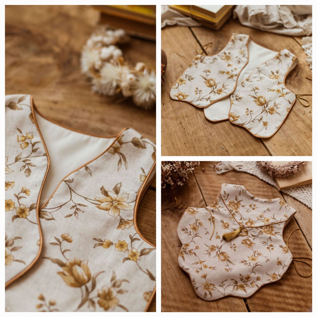 Kamizelka w kwiatuszki lniana honey 1-3 lat