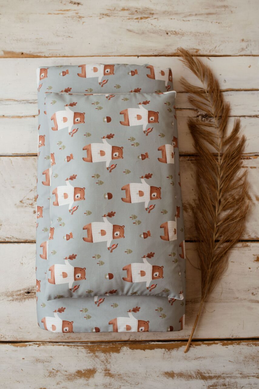 Do suwaka dołączona została urocza tasiemka , aby malutkie rączki mogły go wygodnie zamykać i otwierać:) W zestawie znajduje się poszewka na podusie wraz z wypełnienieniem 🙂 , a całość zapakowana jest w wygodny i poręczny pokrowiec, pasujący do zestawu.