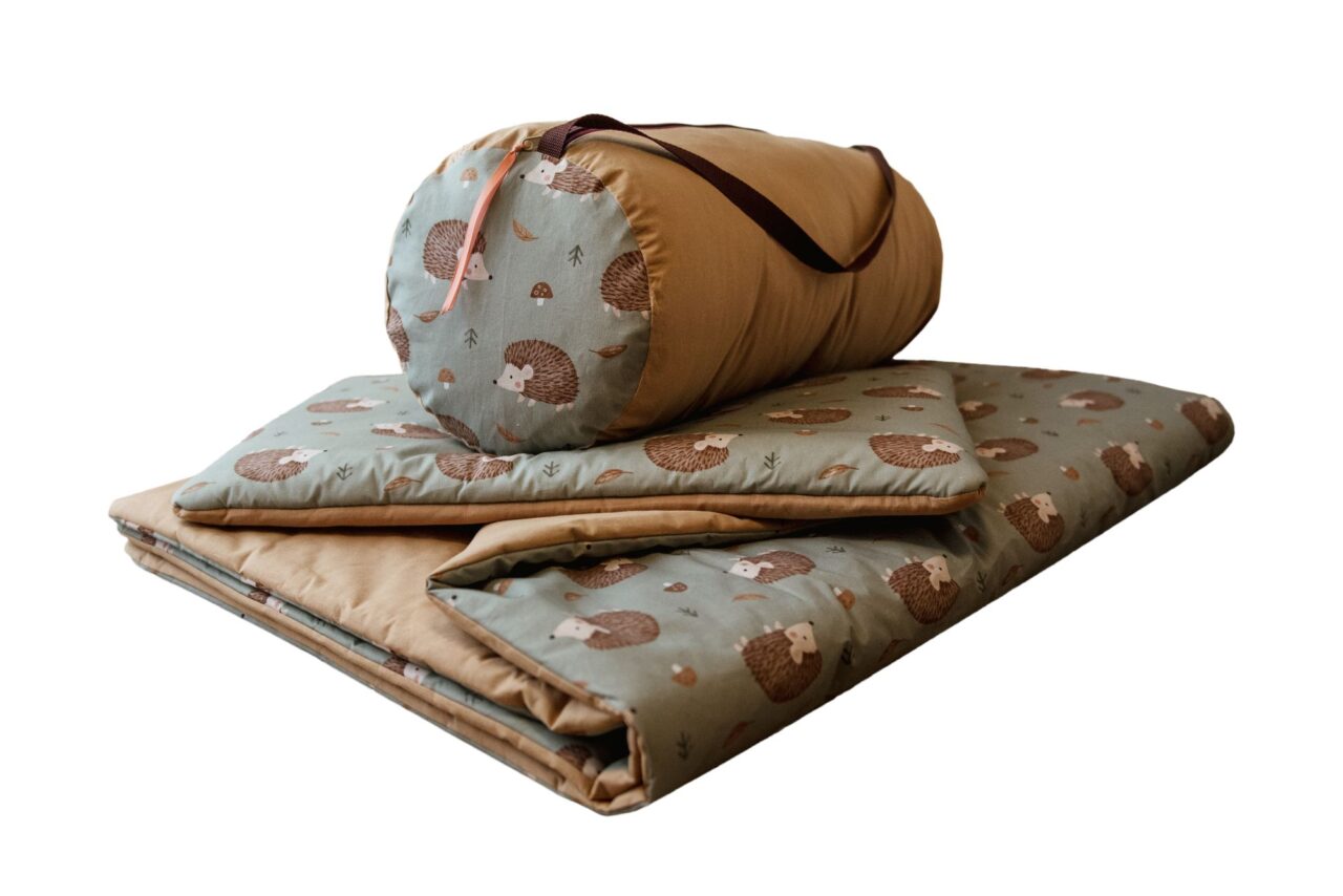 Do kocyka oraz pokrowca wszyte zostały bawełniane tasiemki, na które można wpisać dane swojego dziecka. Wygodny i praktyczny zestaw przedszkolaka, który ułatwia dziecku adaptację w przedszkolu.