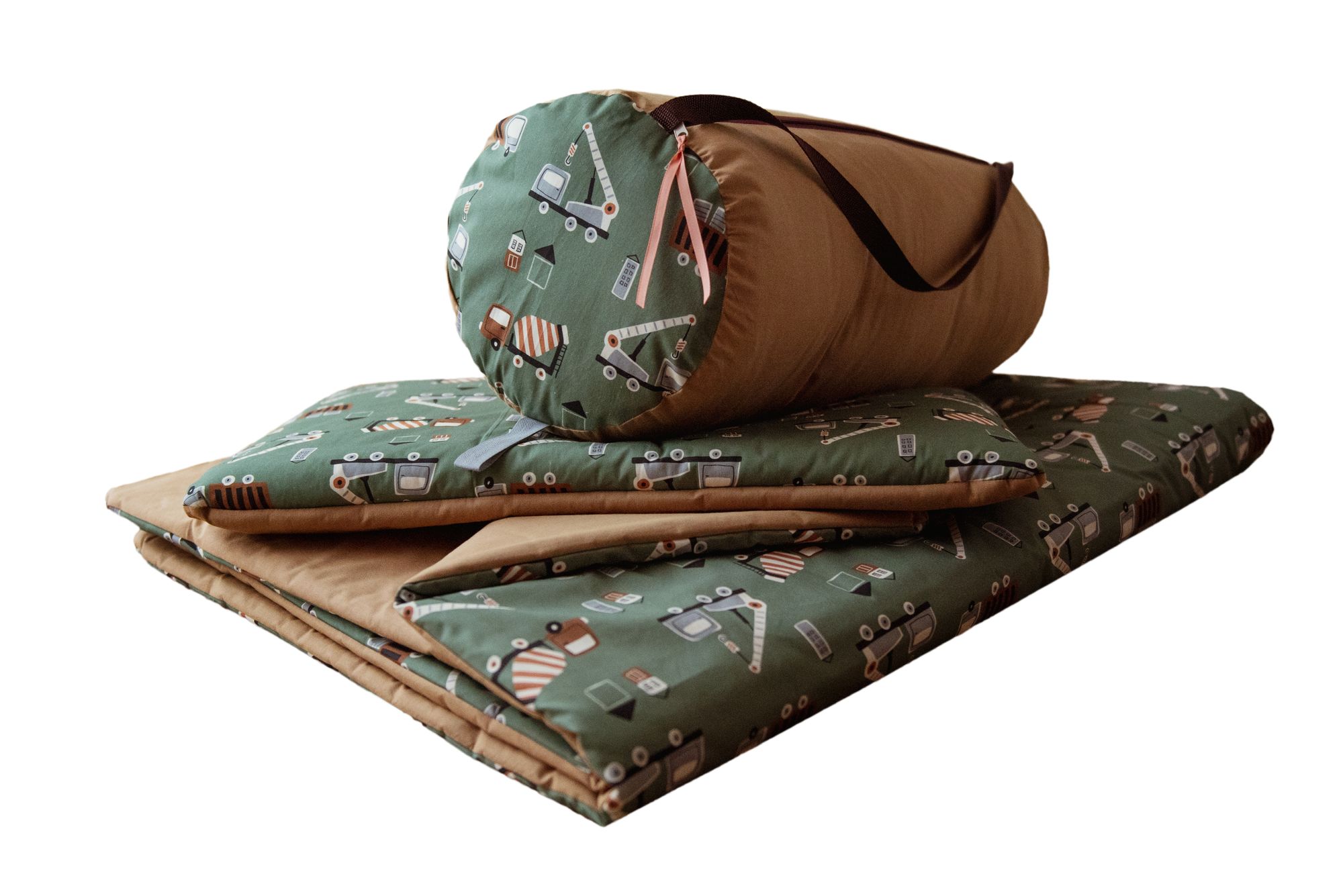 • Przemyślany komplet: wypoczynkowy W zestawie znajdziesz obszerny kocyk (160×120 cm), ergonomiczną poduszkę (40×60 cm) oraz funkcjonalny pokrowiec transportowy. Wszystkie elementy tworzą kompletny system odpoczynku dla Twojego malucha.