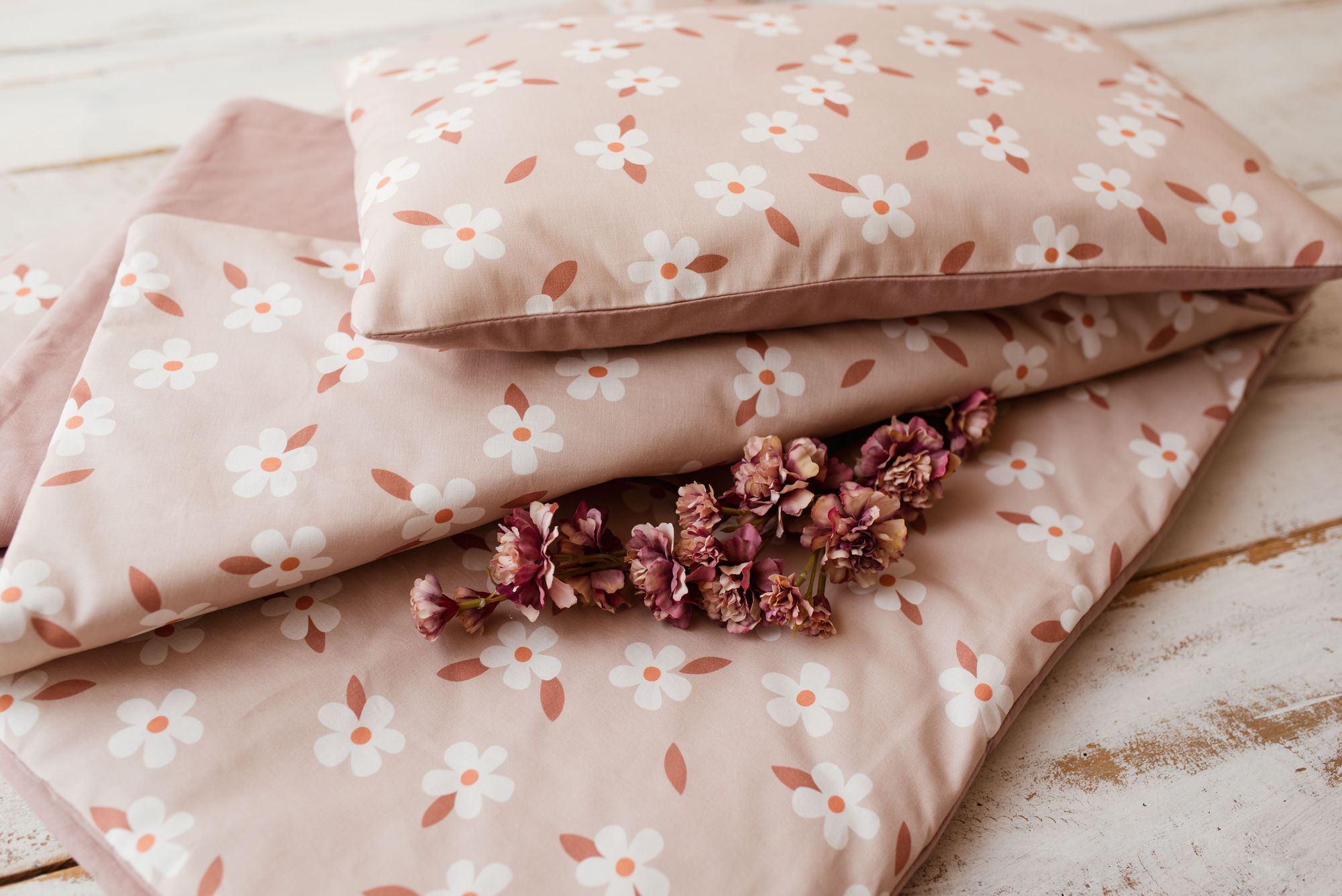 Kocyk bawełniany do przedszkola pościel premium zestaw 3w1 kwiatuszki retro