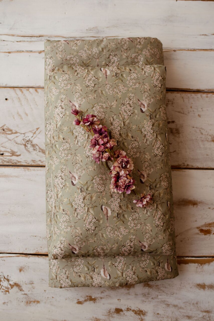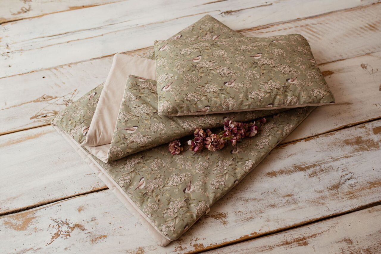 Kocyk bawełniany do przedszkola pościel zestaw 3w1 ptaszki oliwka