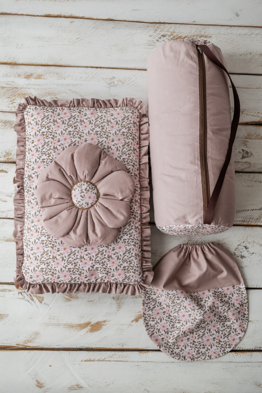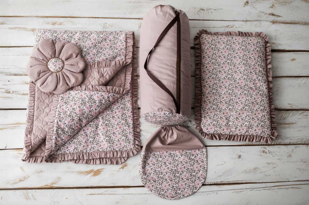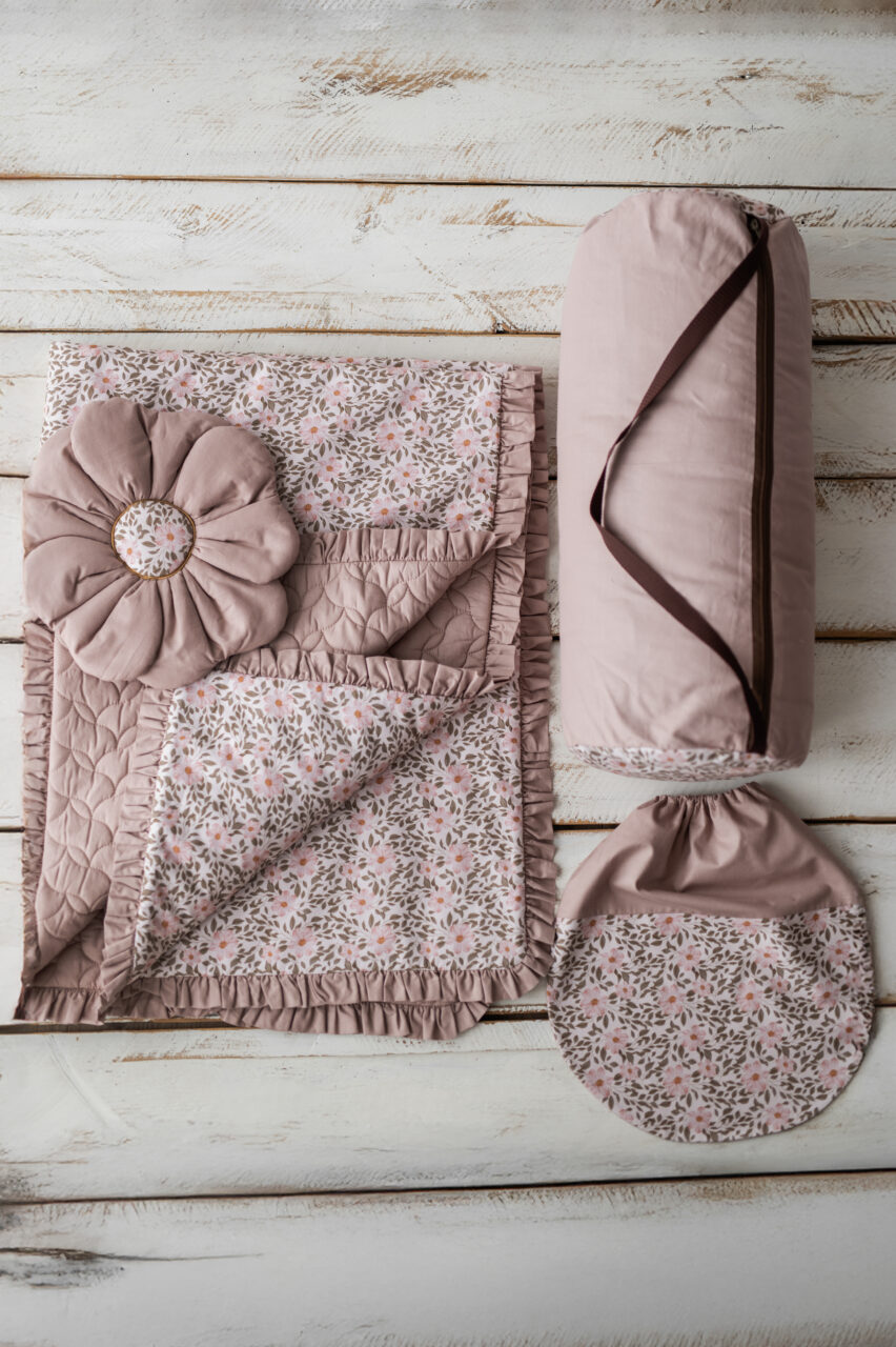 Kocyk dla dziewczynki do przedszkola z falbanką drzewko różane