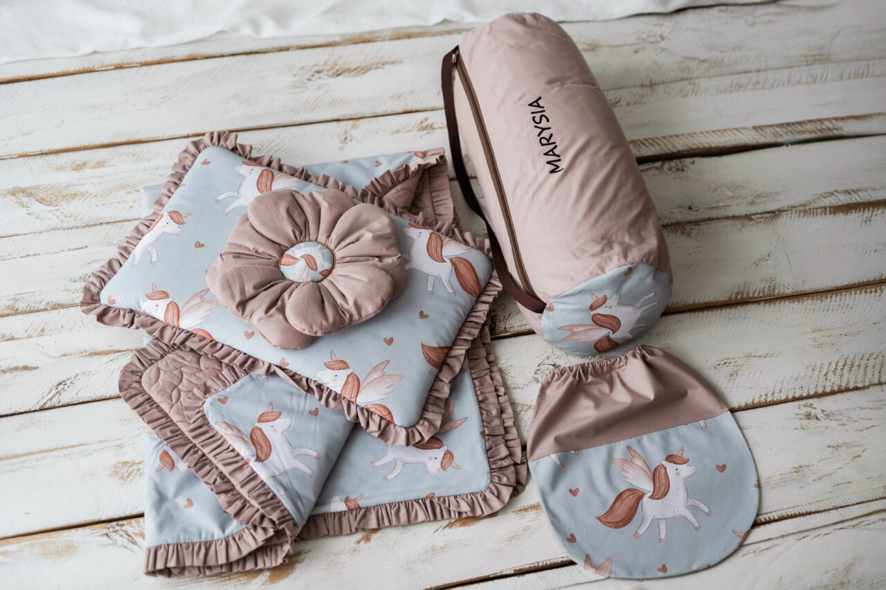 Kocyk dla dziewczynki do przedszkola z falbanką skrzydlaty jednorożec