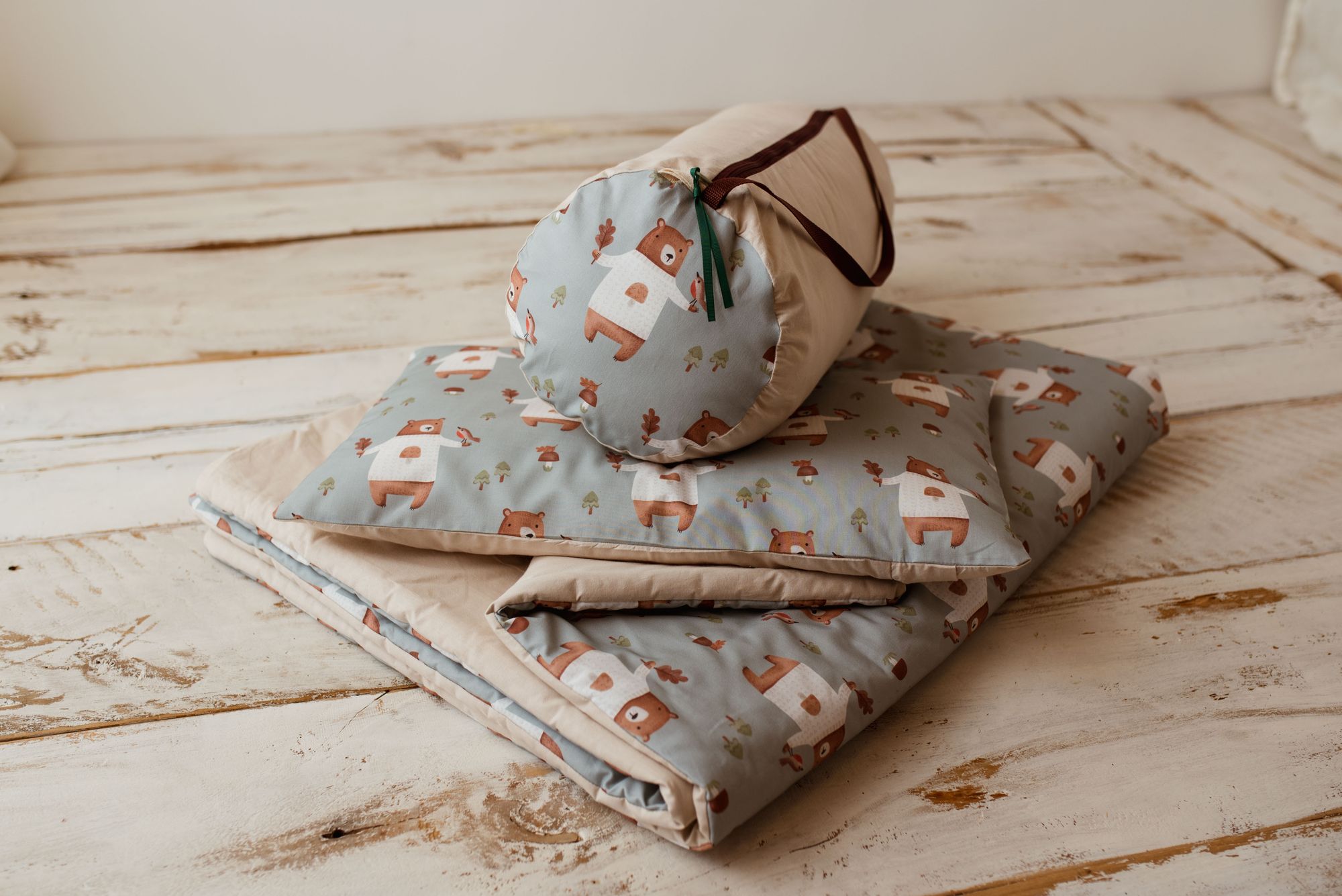 Kocyk do przedszkola pościel 3w1 misie niebieskie natural