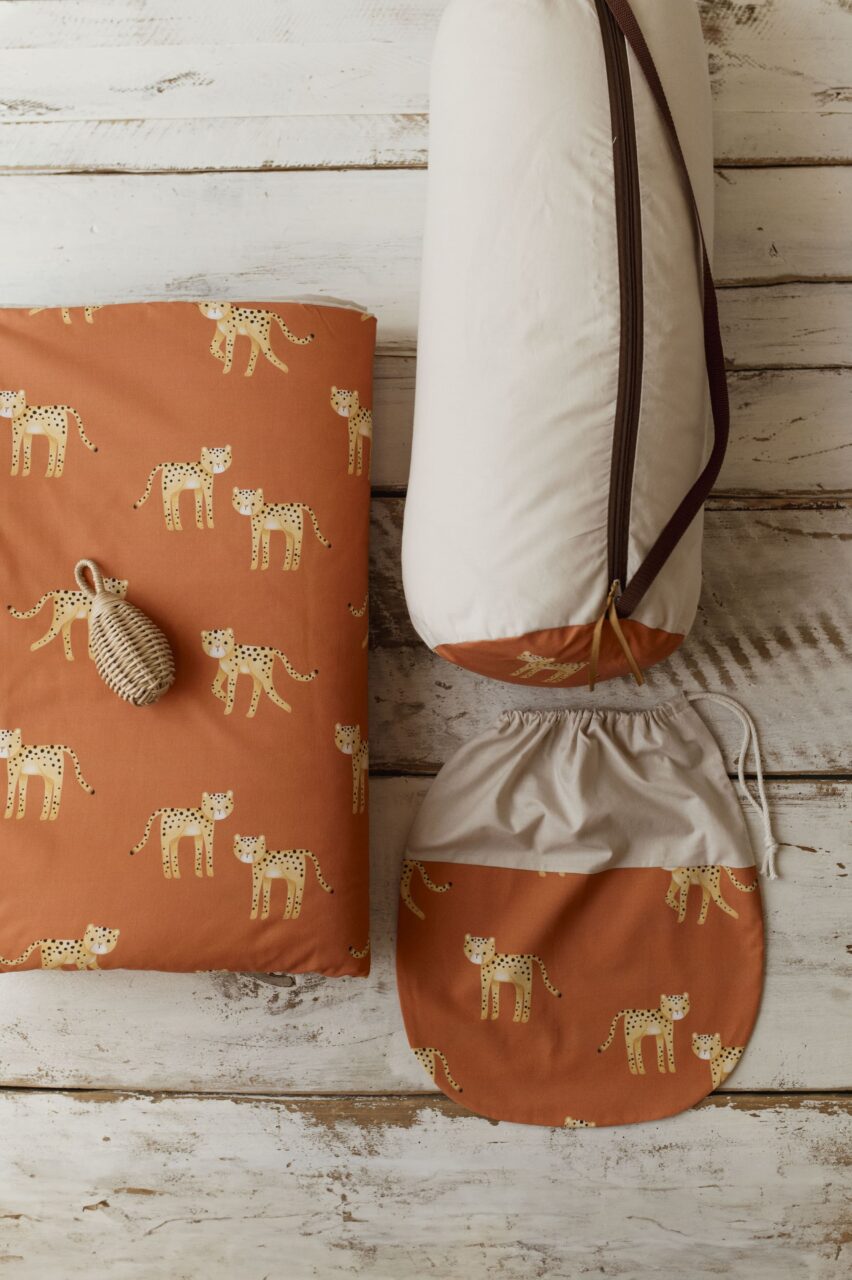 Kocyk do żłobka dla dzieci pomarańczowy gepardy