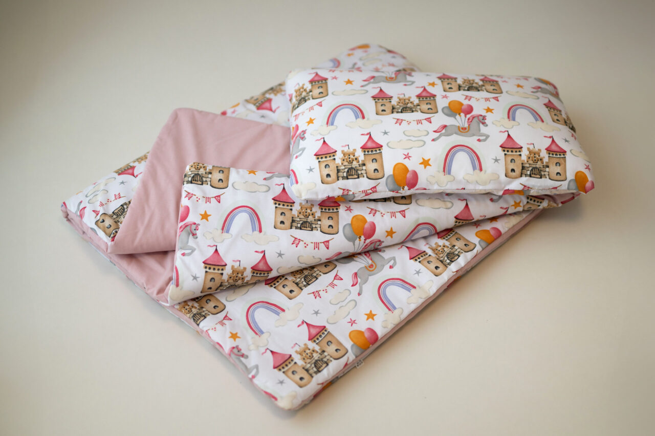 Ten starannie zaprojektowany zestaw to niezastąpiony towarzysz codziennych drzemek w żłobku, przedszkolu czy w czasie wyjazdów. Dzięki swojej uniwersalności, kocyk może być również używany jako pościel w dziecięcym łóżeczku – zapewniając maluchowi komfort i ciepło.