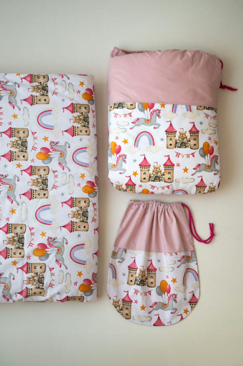 W naszym sklepie dostępne są również dopasowane akcesoria – m.in. woreczki na buciki i drobiazgi – które można zestawić z pościelą, tworząc estetyczny i spójny komplet.
