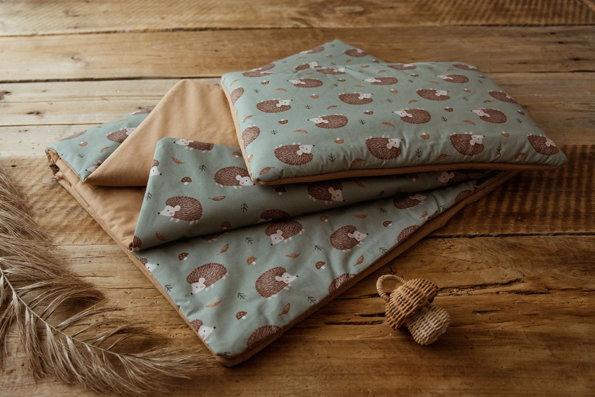Kocyk do żłobka pościel bawełniany premium zestaw 3w1 jeżyki zielone