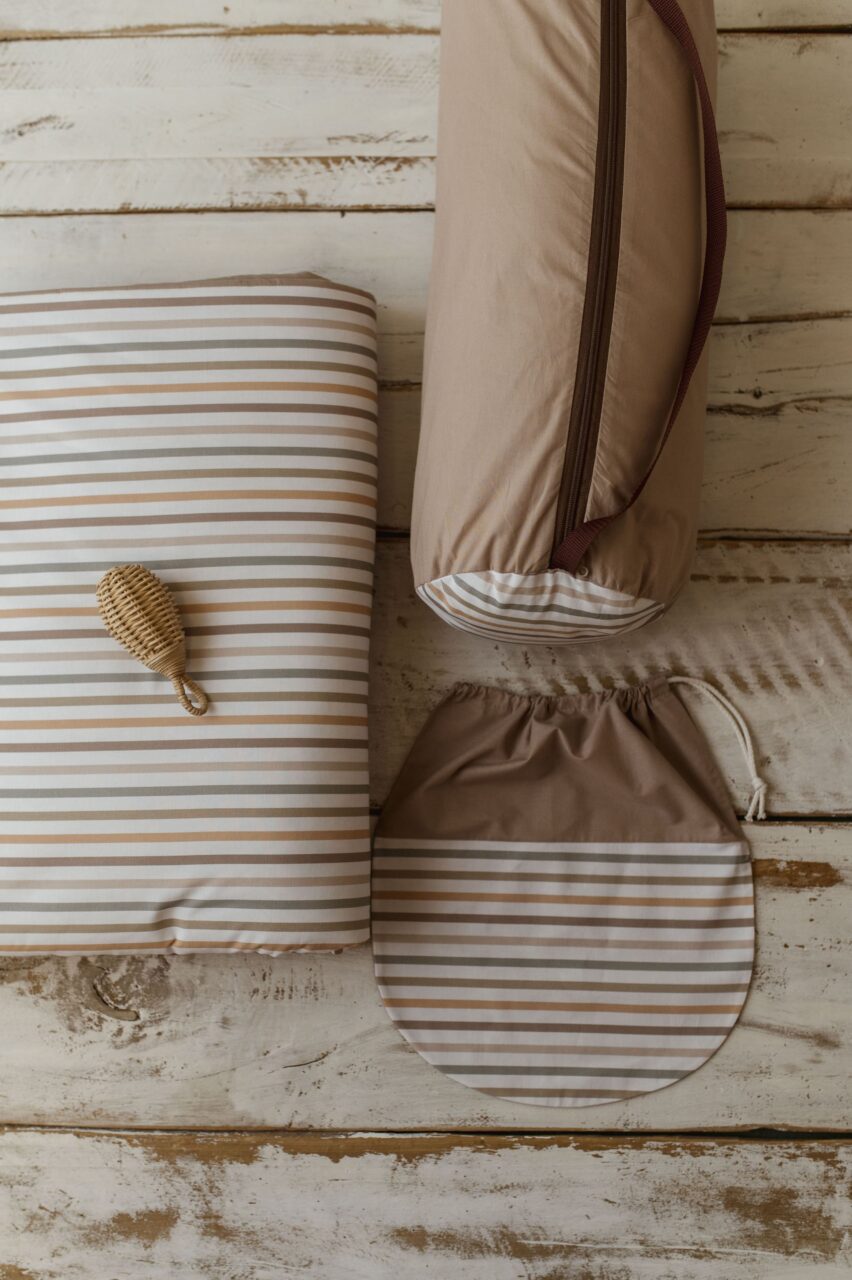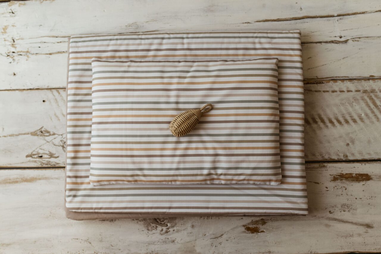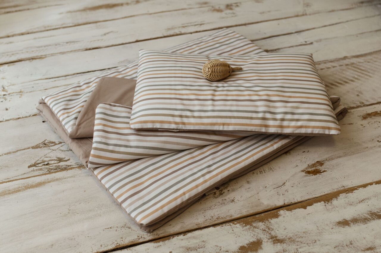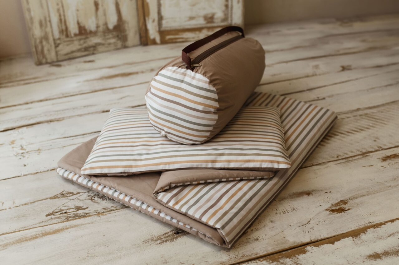Kocyk do żłobka w paski zestaw 3w1 poduszka + pokrowiec