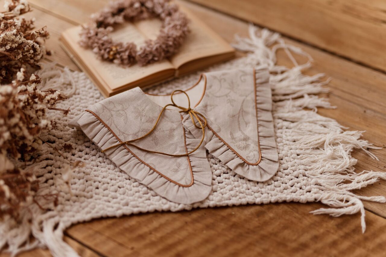 Kołnierzyk damski z falbanką lniany żakard stefania royal