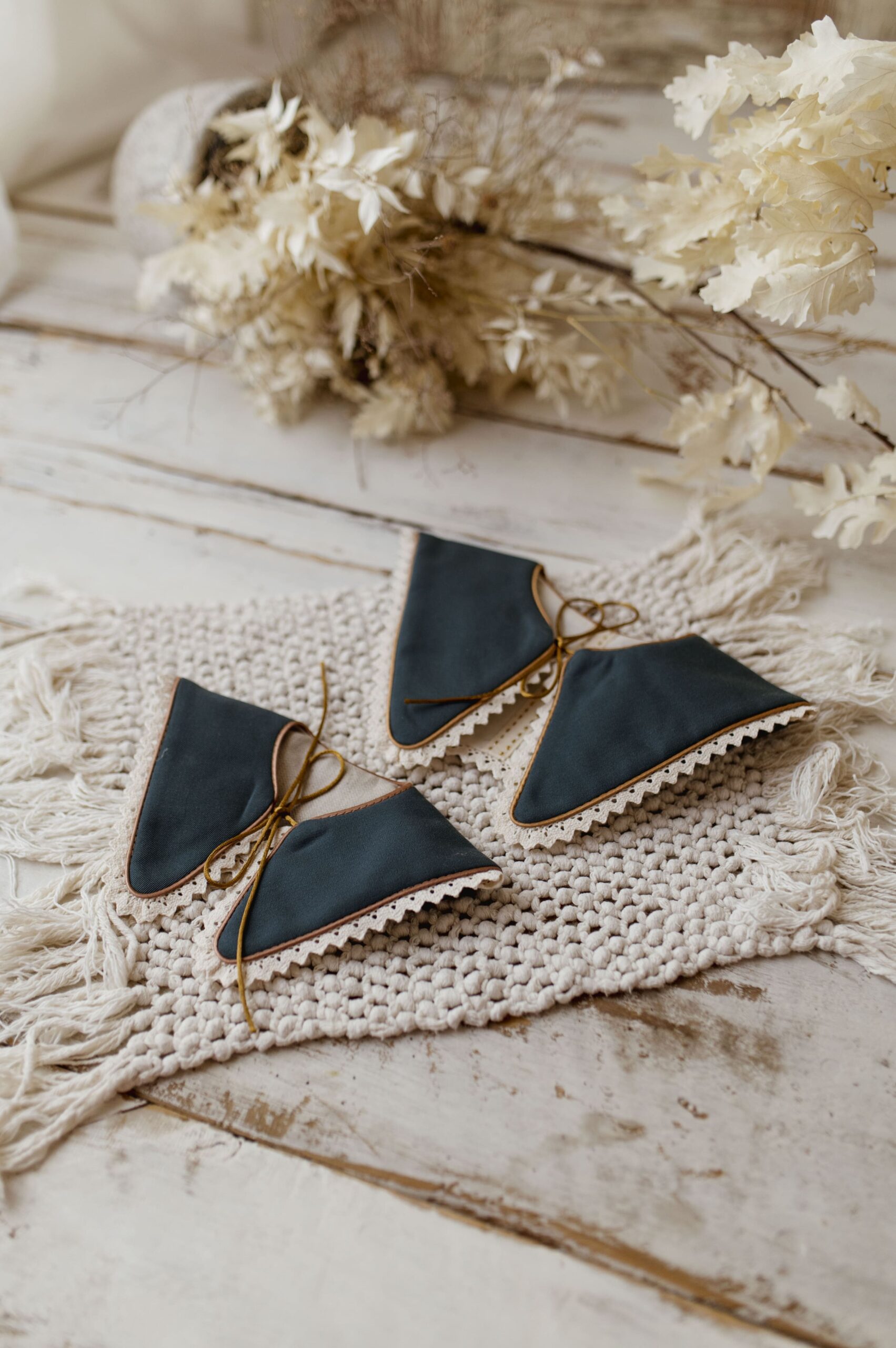 Ten elegancki kołnierzyk w głębokim odcieniu granatu to doskonałe połączenie klasycznego stylu retro i nowoczesnej elegancji. Subtelne wykończenie delikatną koronką oraz precyzyjne detale sprawiają, że to idealny dodatek do stylizacji na wyjątkowe okazje.