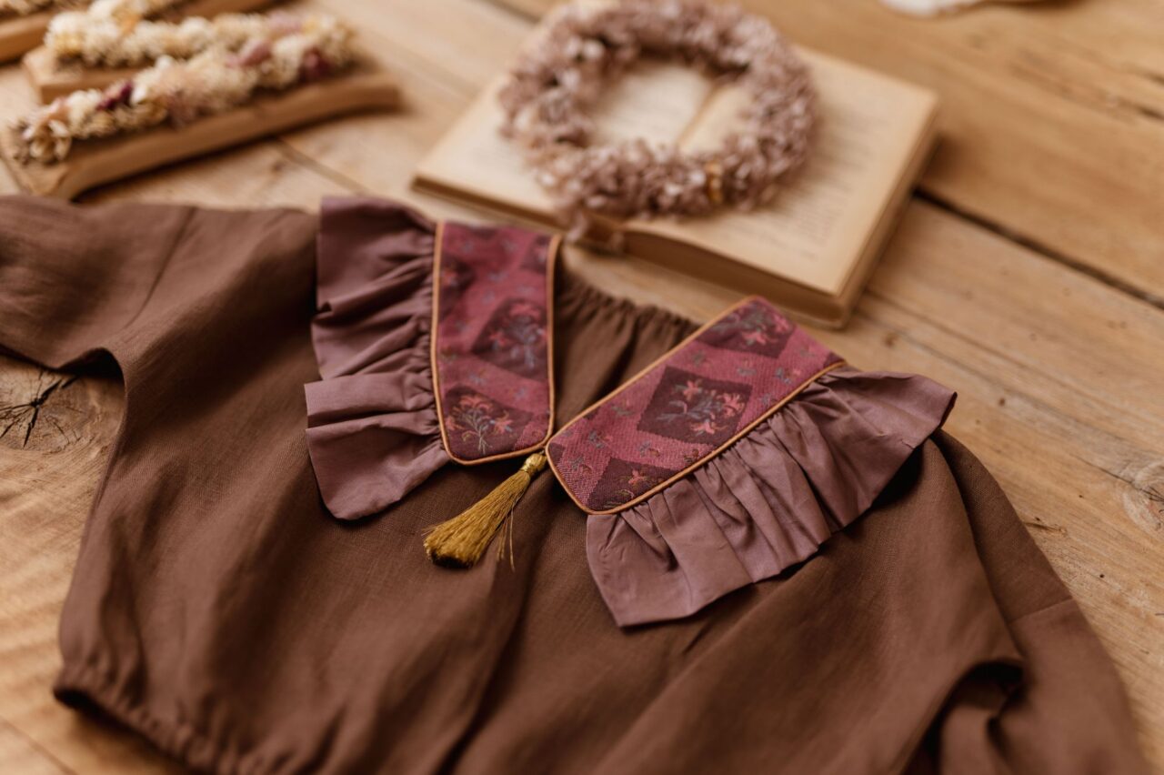 Kołnierzyk lniany dla dziewczynki z falbanką coco retro rose