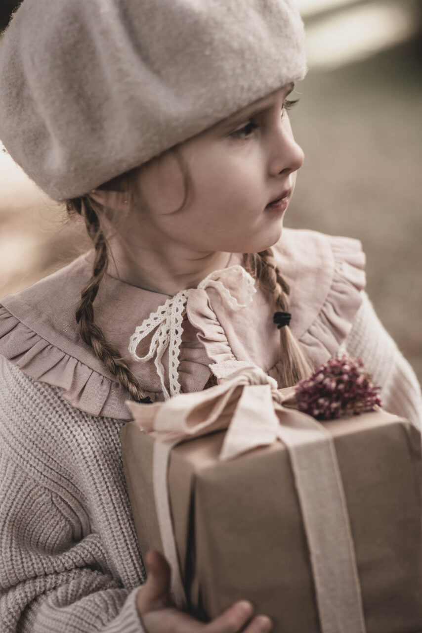 Kołnierzyk lniany z falbanką retro róż dla dziecka zoja