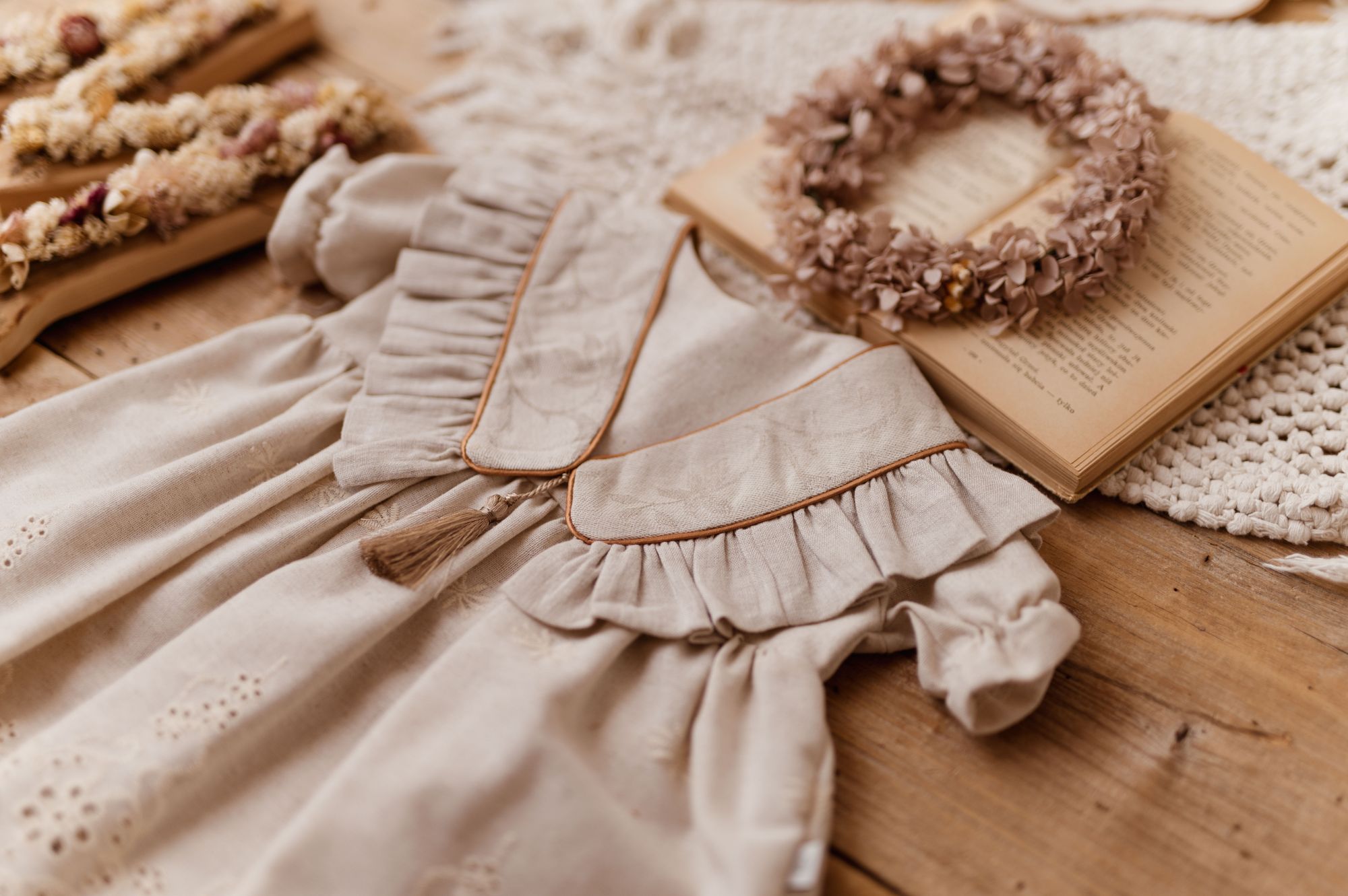 Kołnierzyk vintage lniany żakard w kwiatuszki dla dziecka Antonina