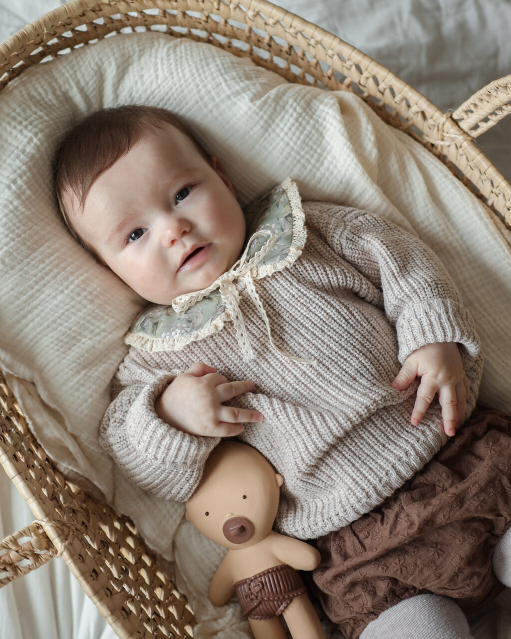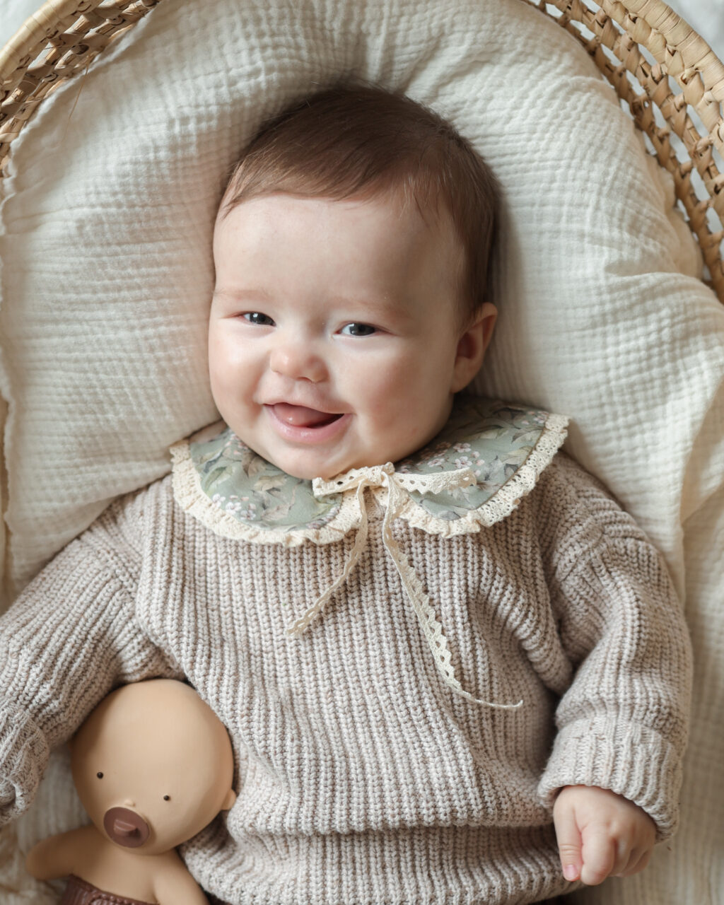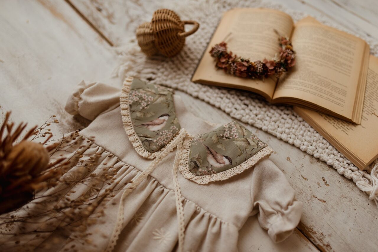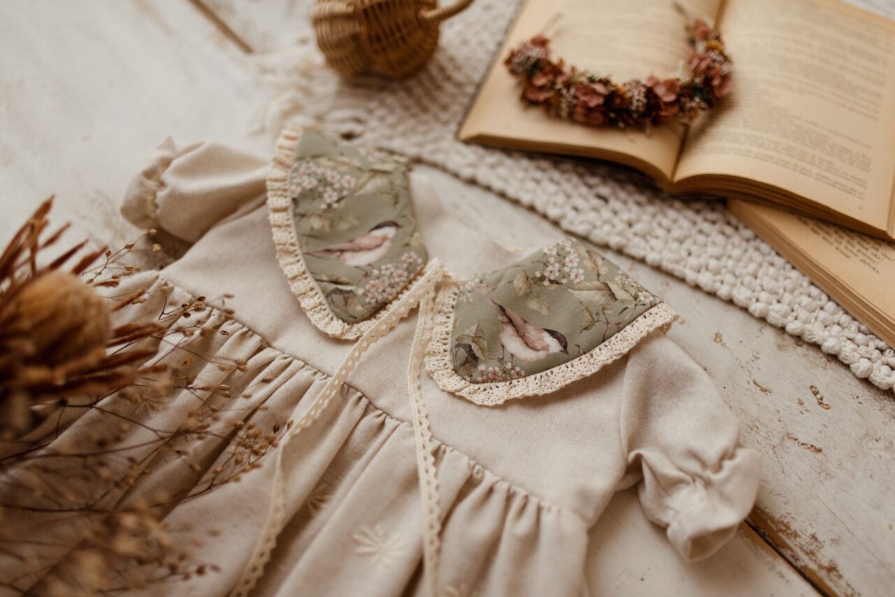 Kołnierzyk z koronką bawełniany retro damski Hania wróbelki oliwka