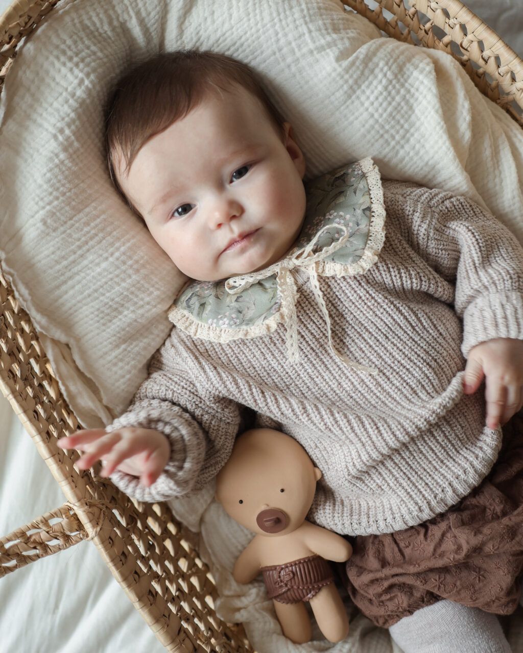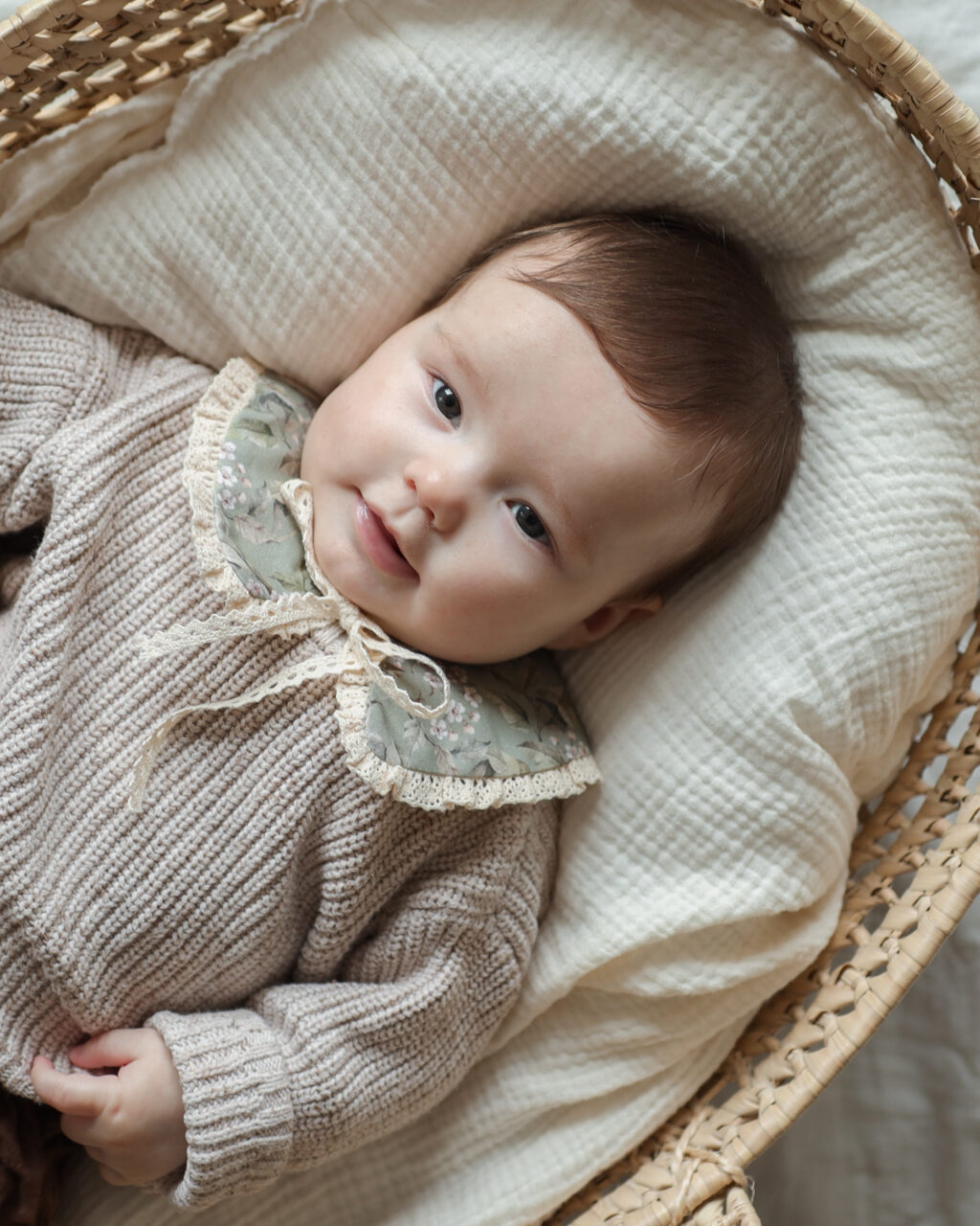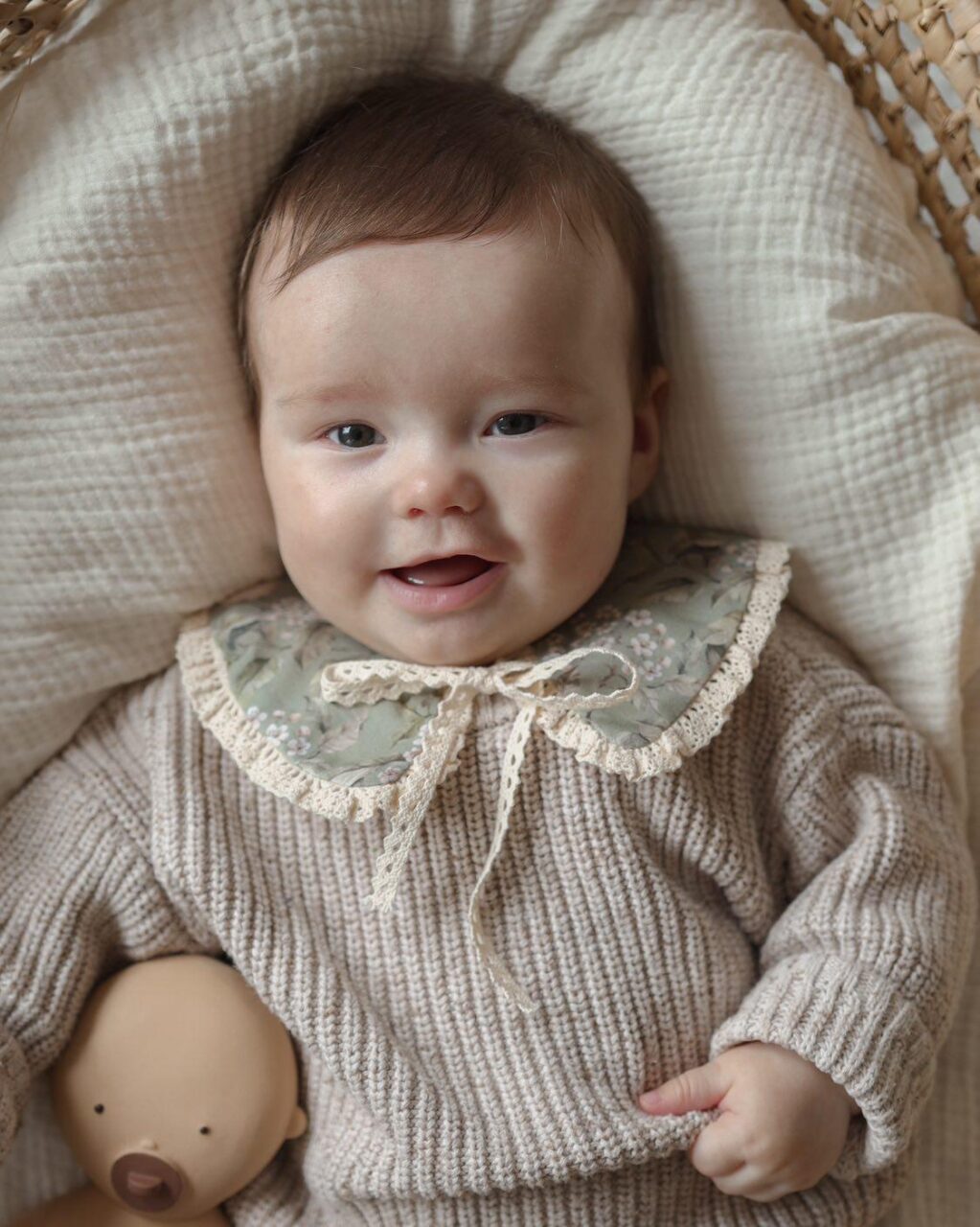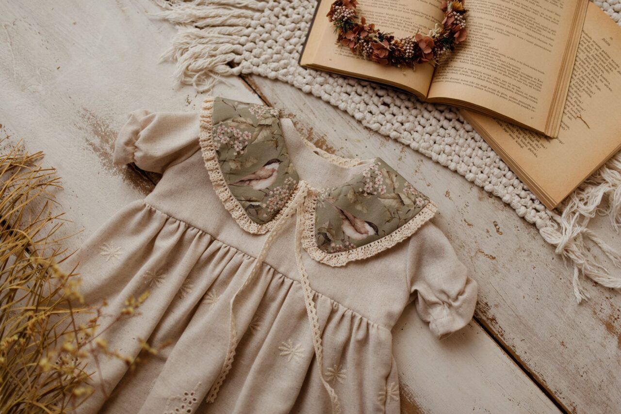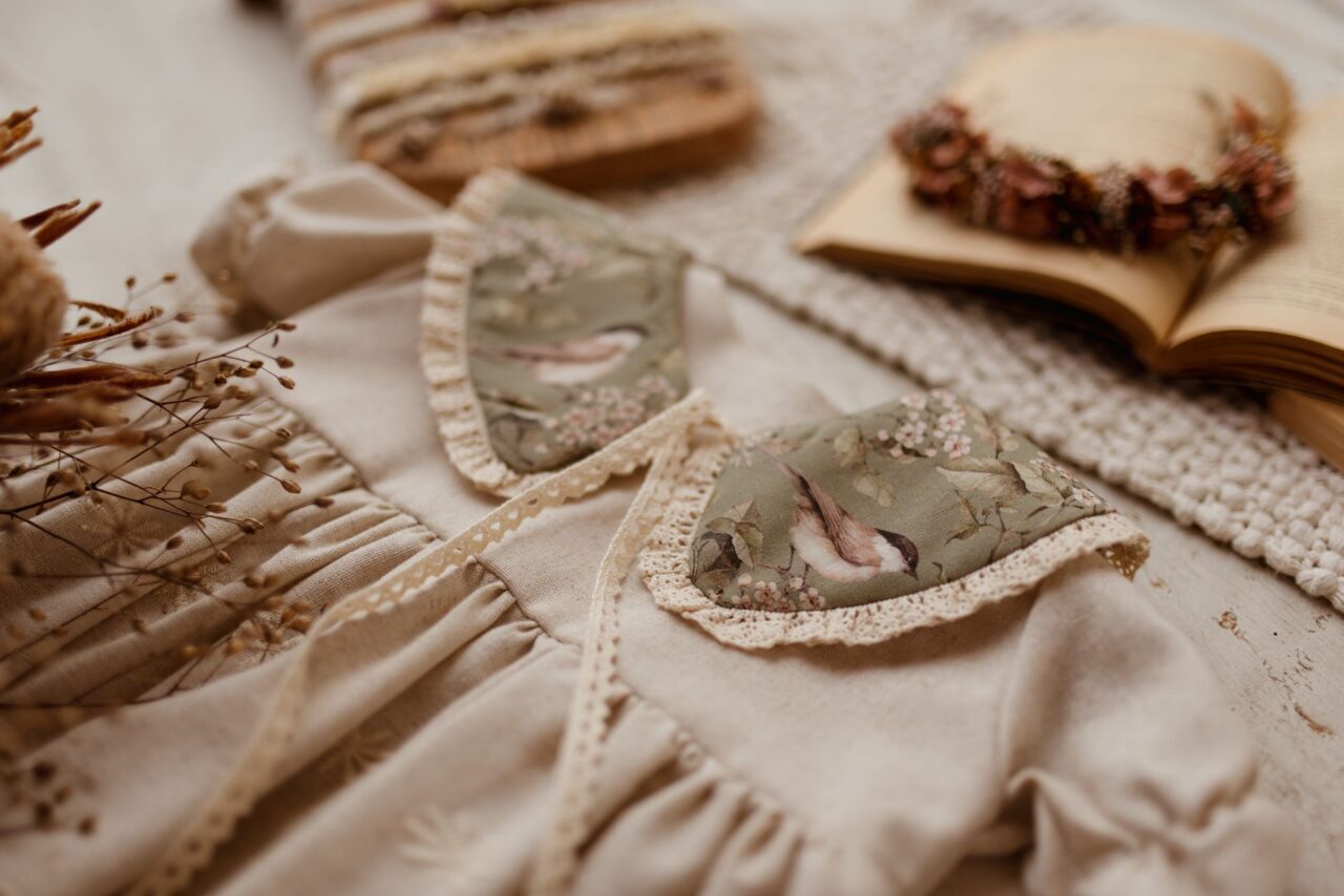 Kołnierzyk z koronką dla dziecka bawełniany Hania wróbelki oliwka