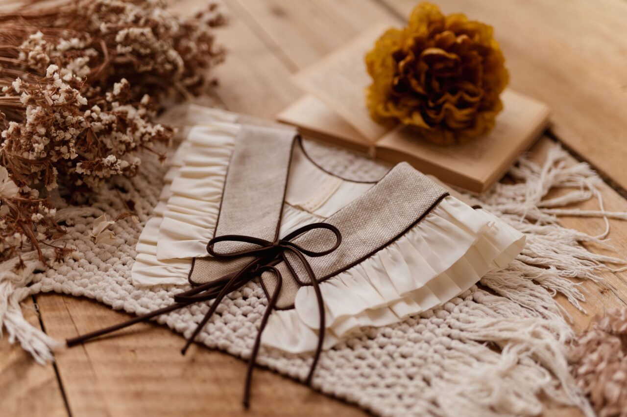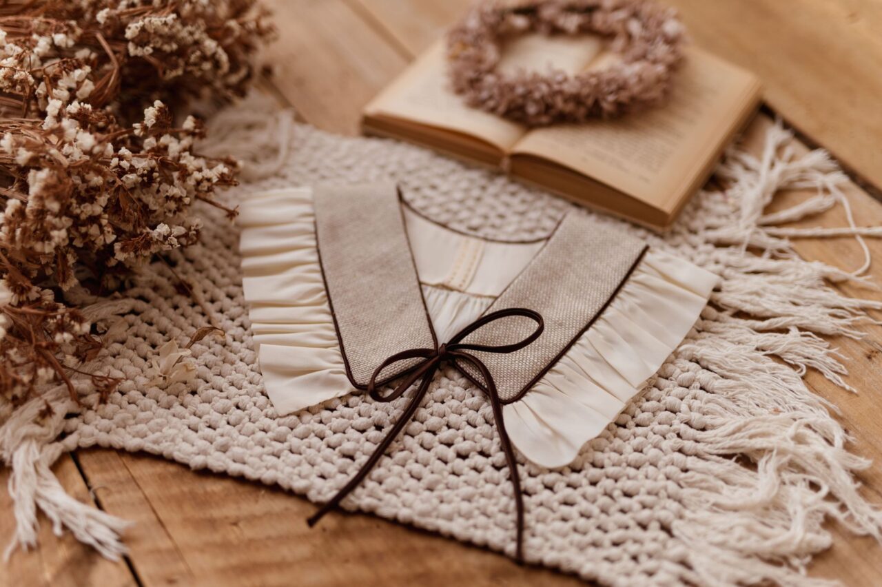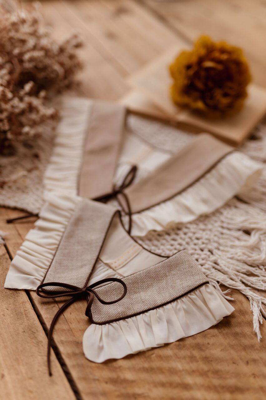 Kołnierzyk zawiązywany damski z falbanką lniany jasny beż Antonina