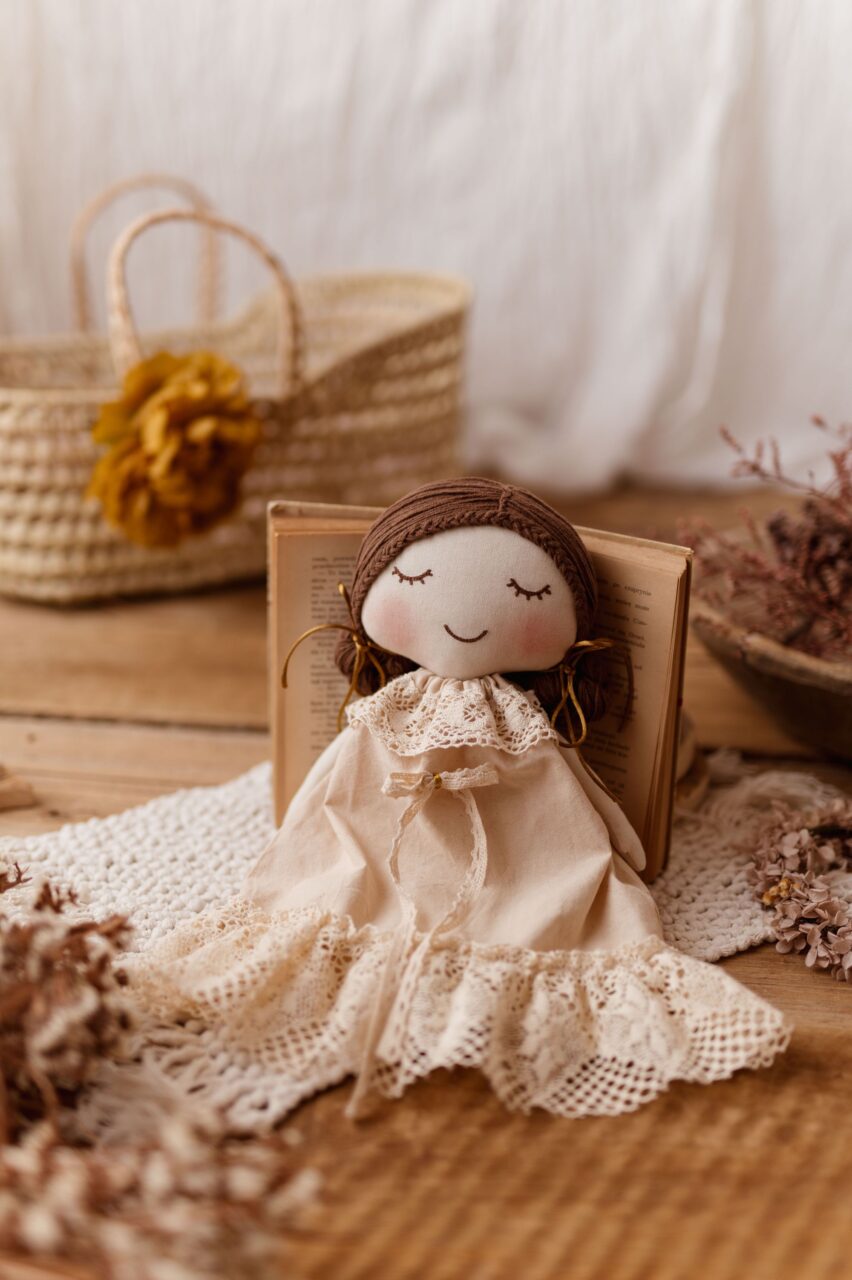 Lalka bawełniana przytulanka retro koronka Marysia natural