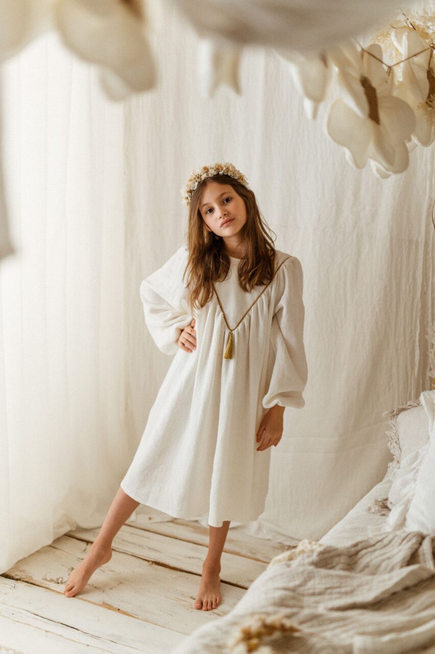 Lniana biała sukienka retro Marysia white day 1-4 lat