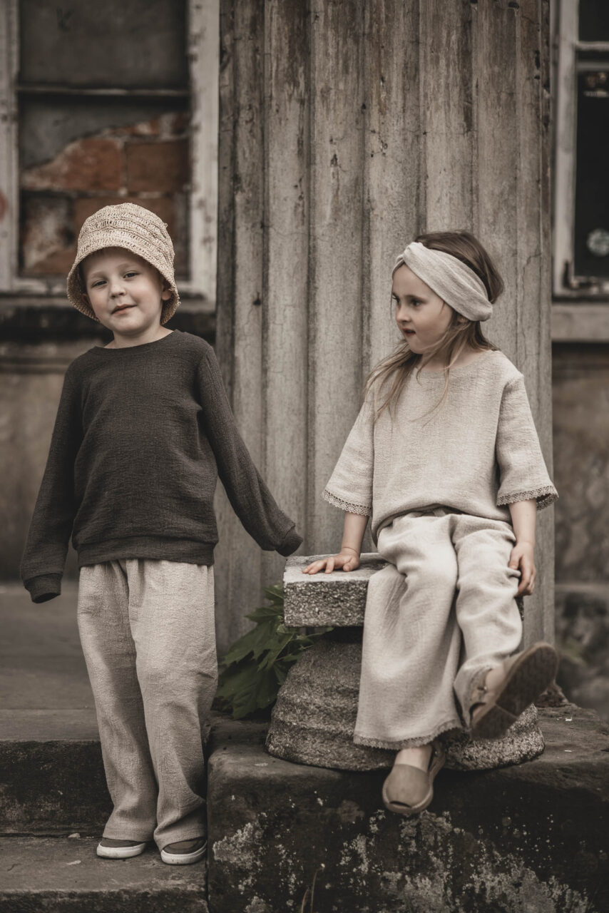 LNIANA BLUZA UNISEX Uszyta z 100% krepy lnianej typu stonewashed.