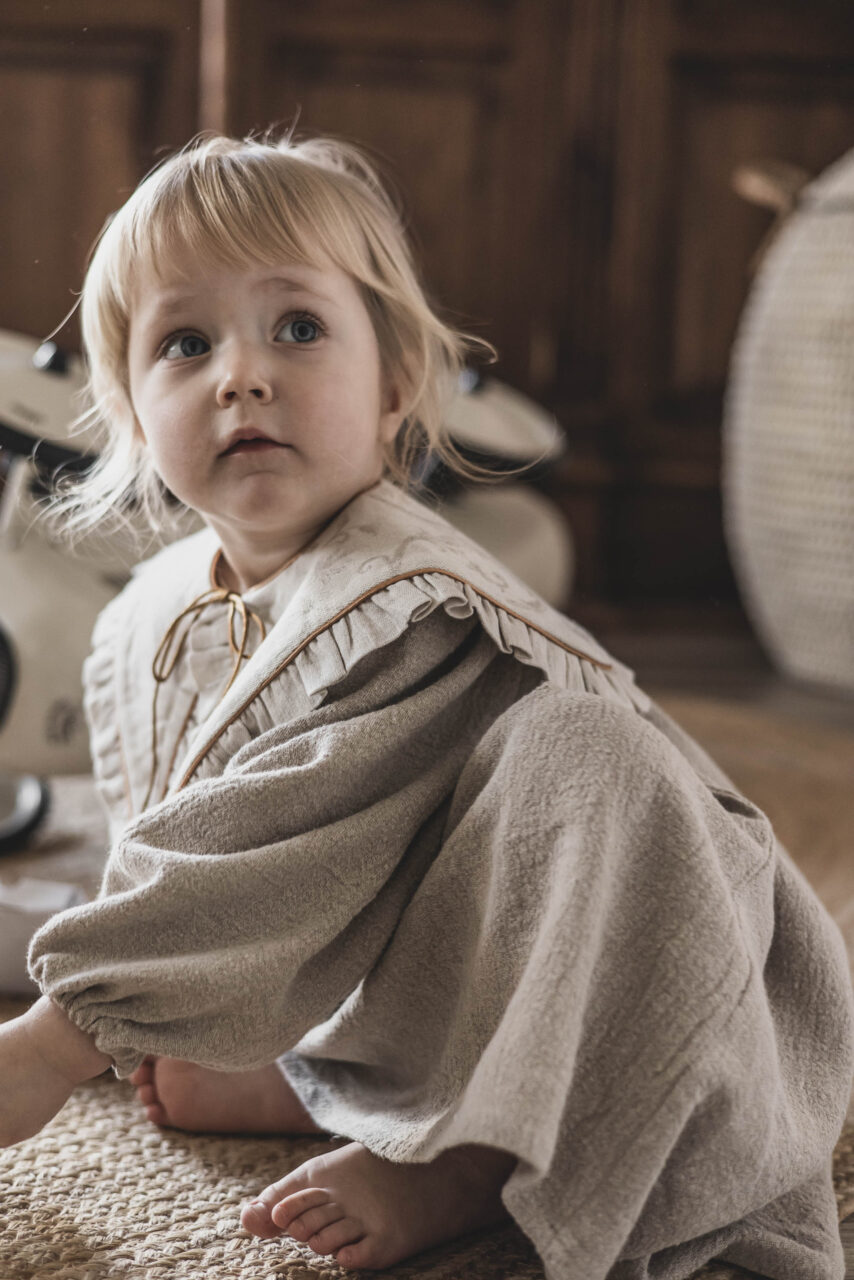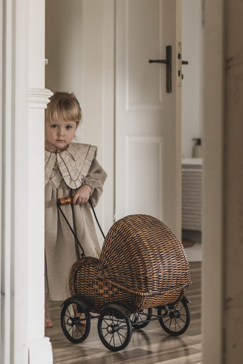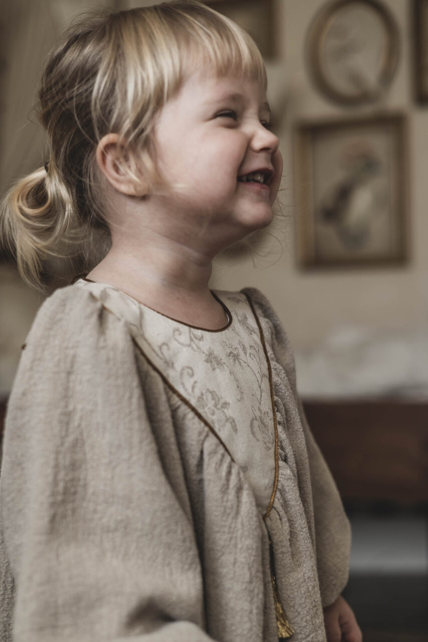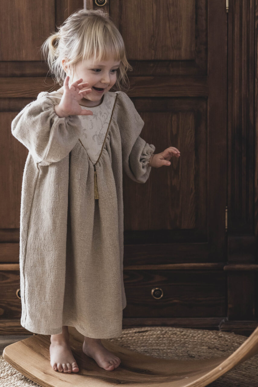 Lniana sukienka retro dla dziewczynki premium Marysia krepa