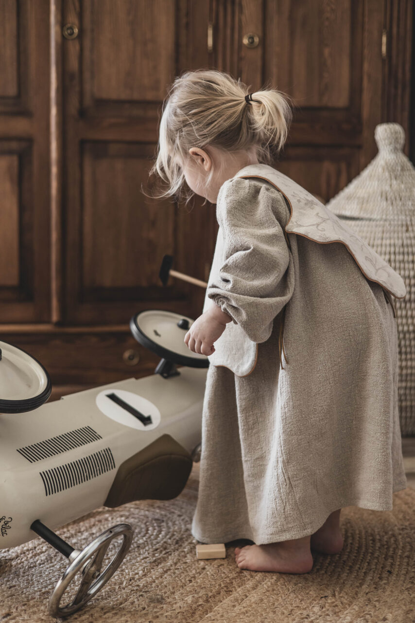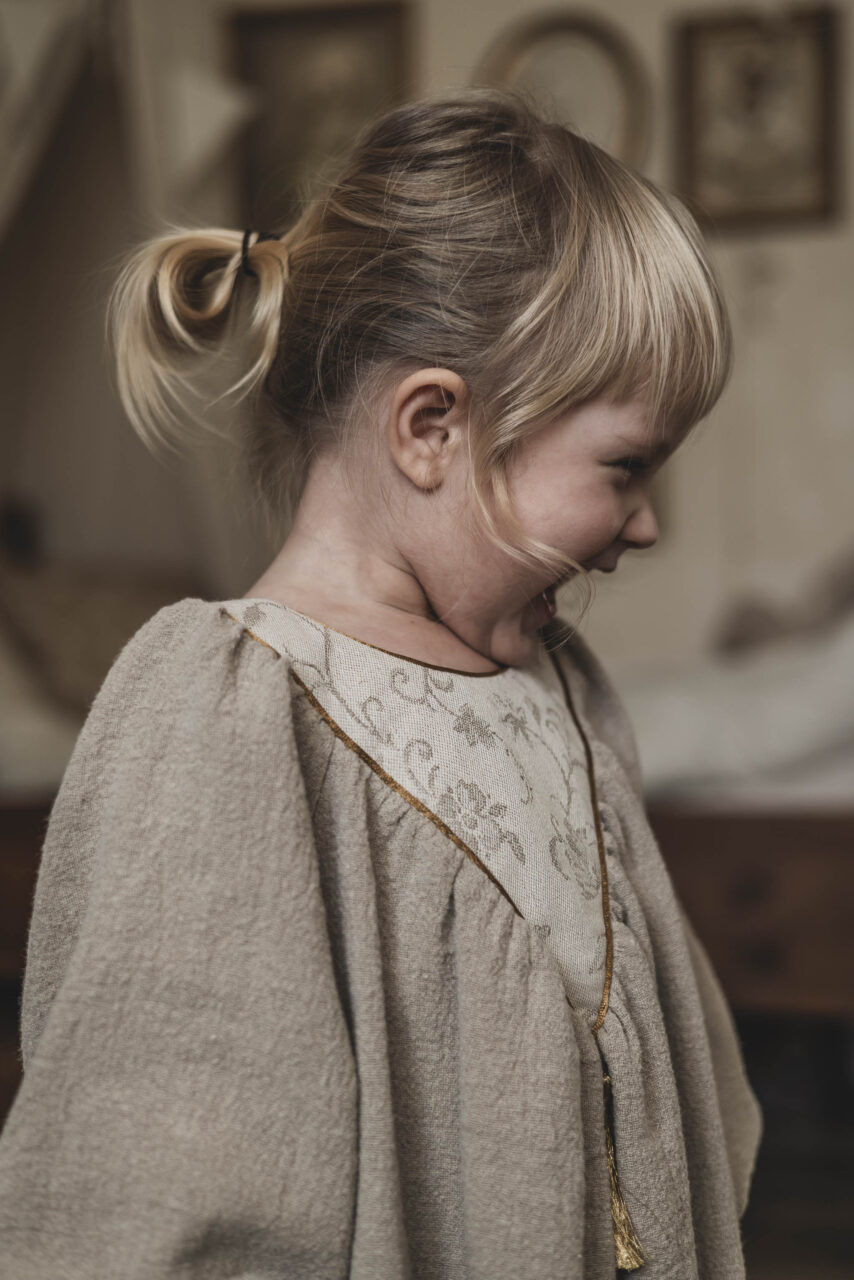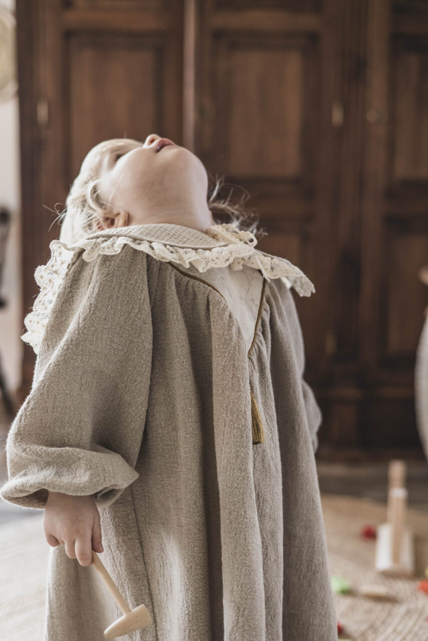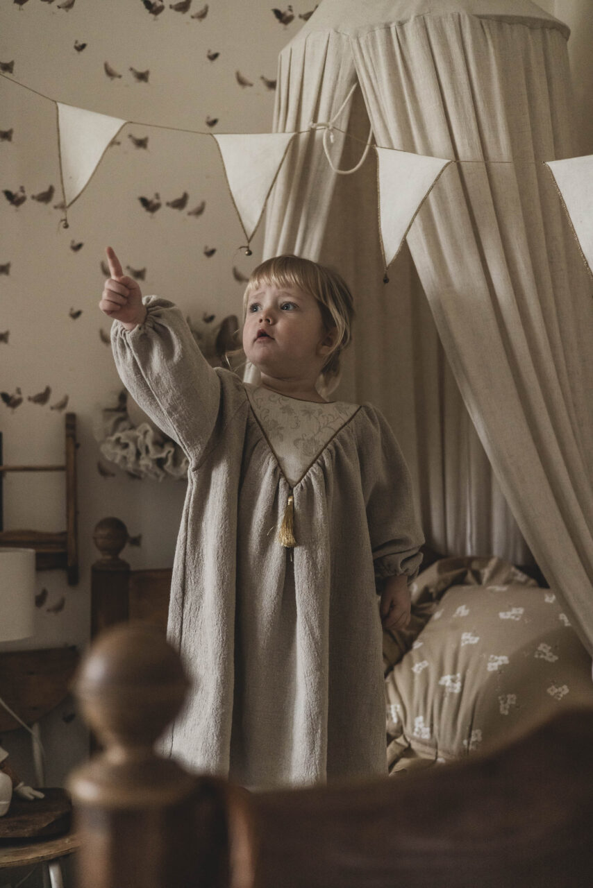 Lniana sukienka retro dla dziewczynki premium Marysia krepa