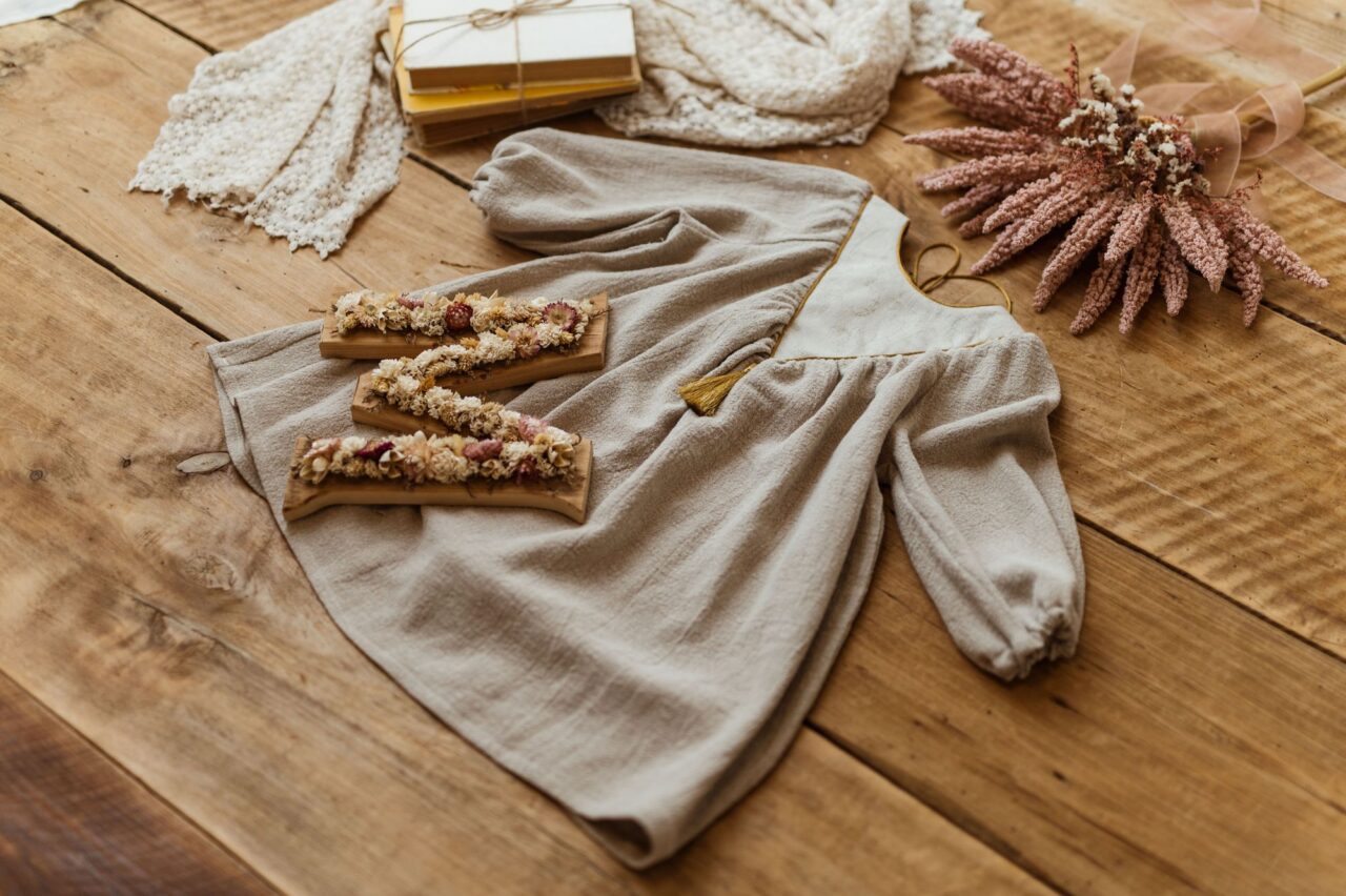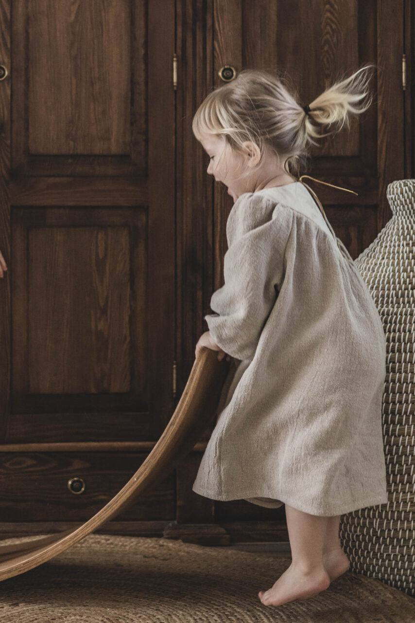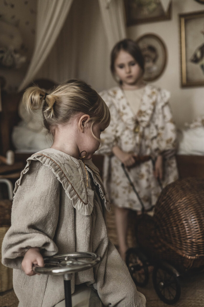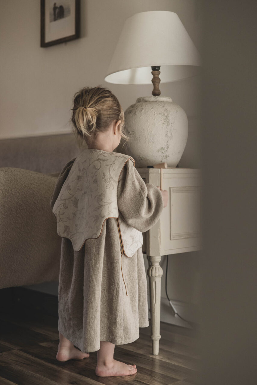 Lniana sukienka retro dla dziewczynki premium Marysia krepa