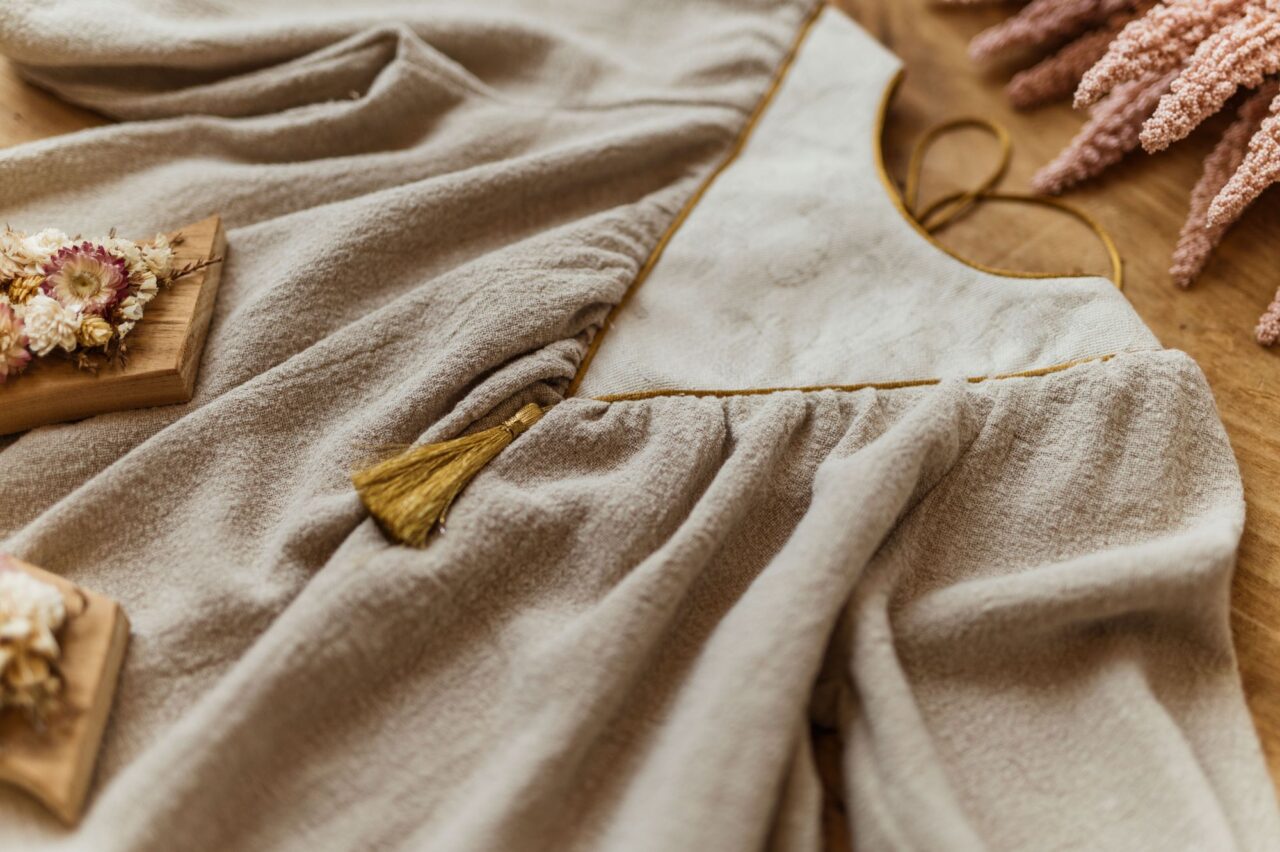 Lniana sukienka szyta z 100% litewskiego lnu typu stonewashed.