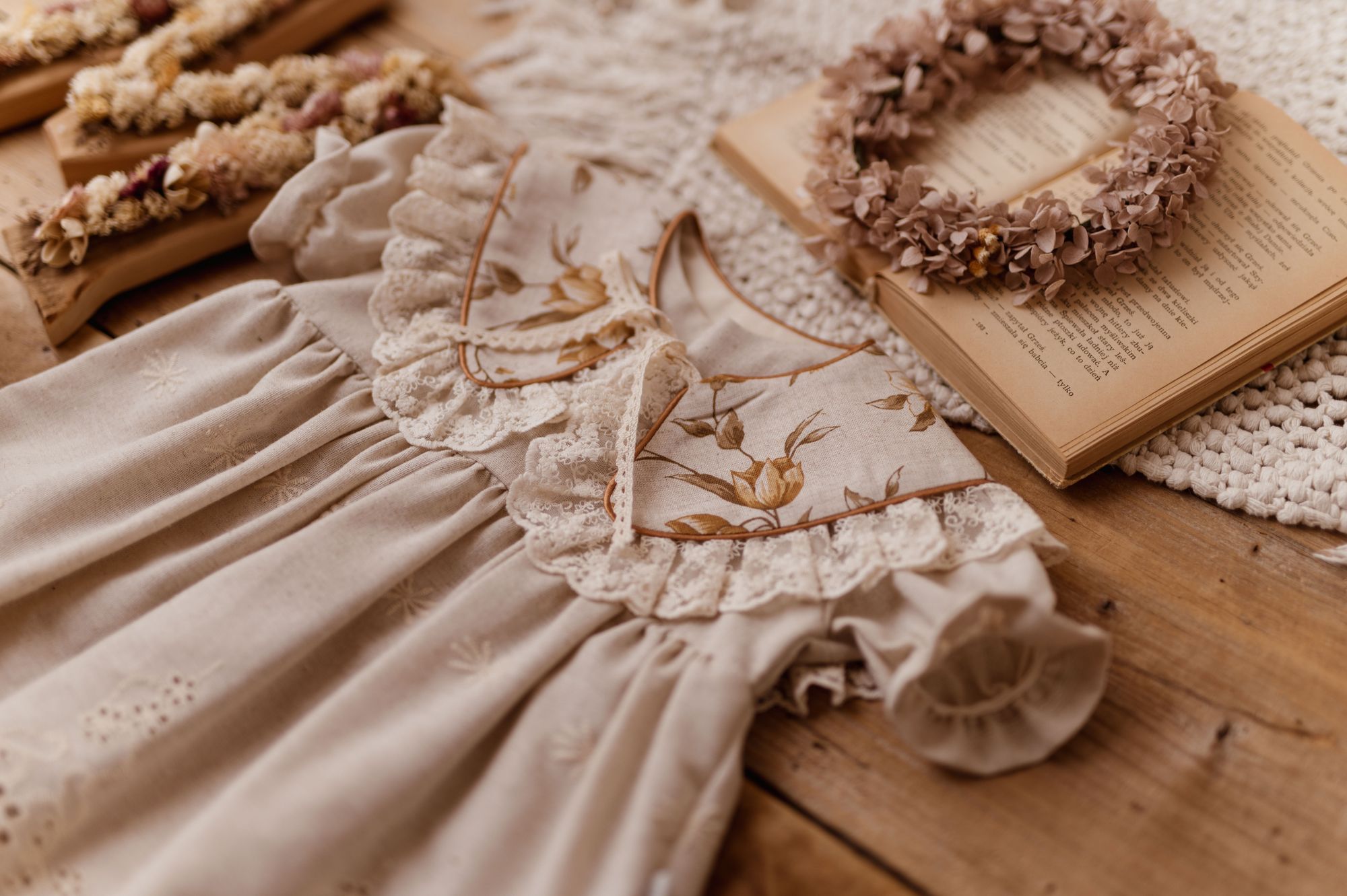 Lniany kołnierzyk dla dziewczynki z falbanką w kwiatki zoja honey