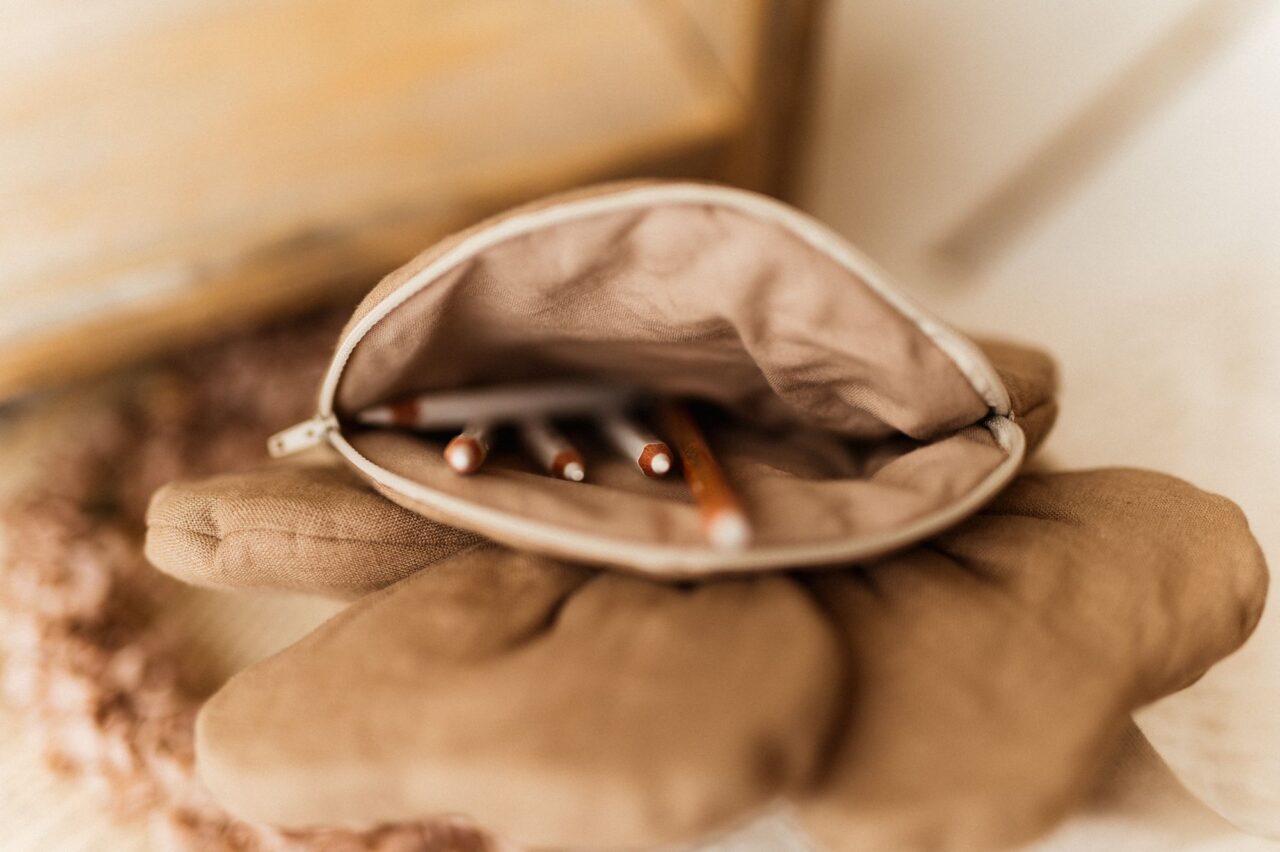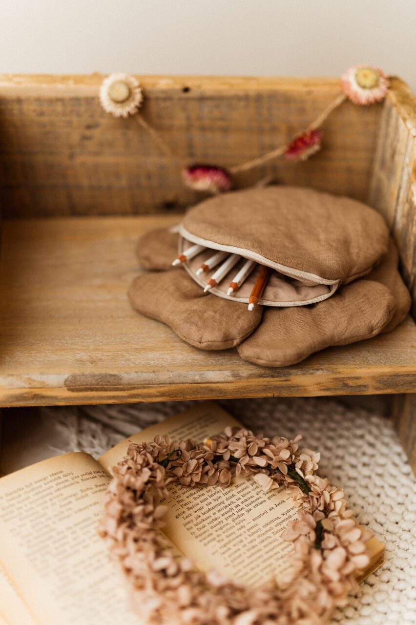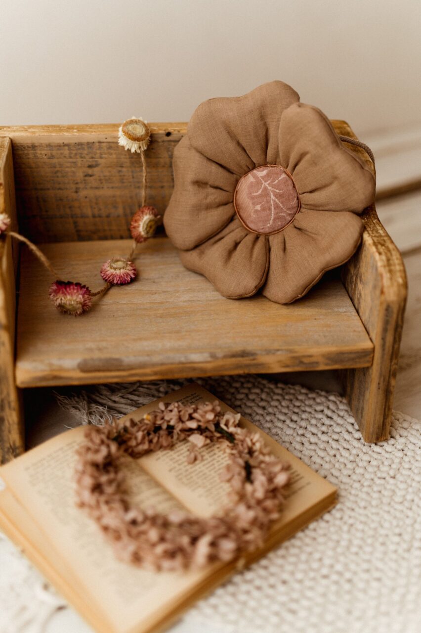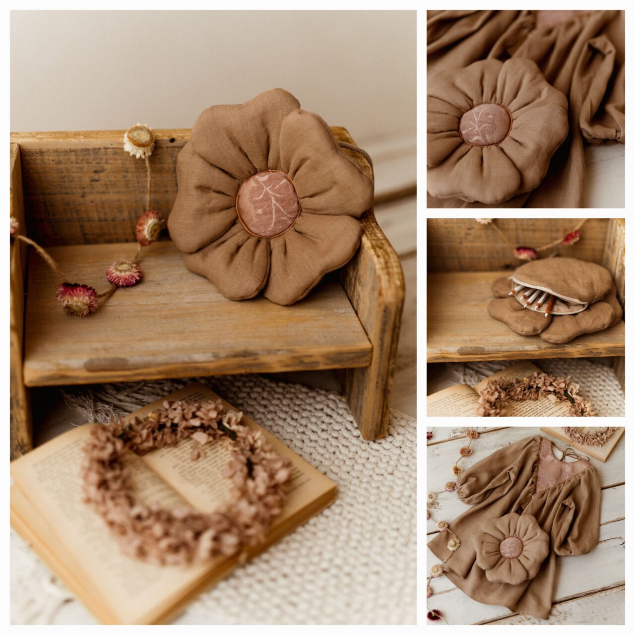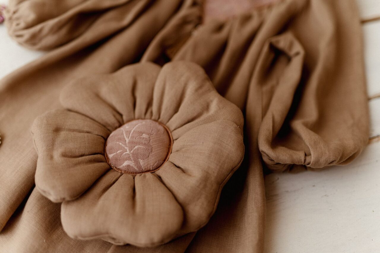 Retro beżowa lniana torebka kwiatuszek dla dziewczynki taupe