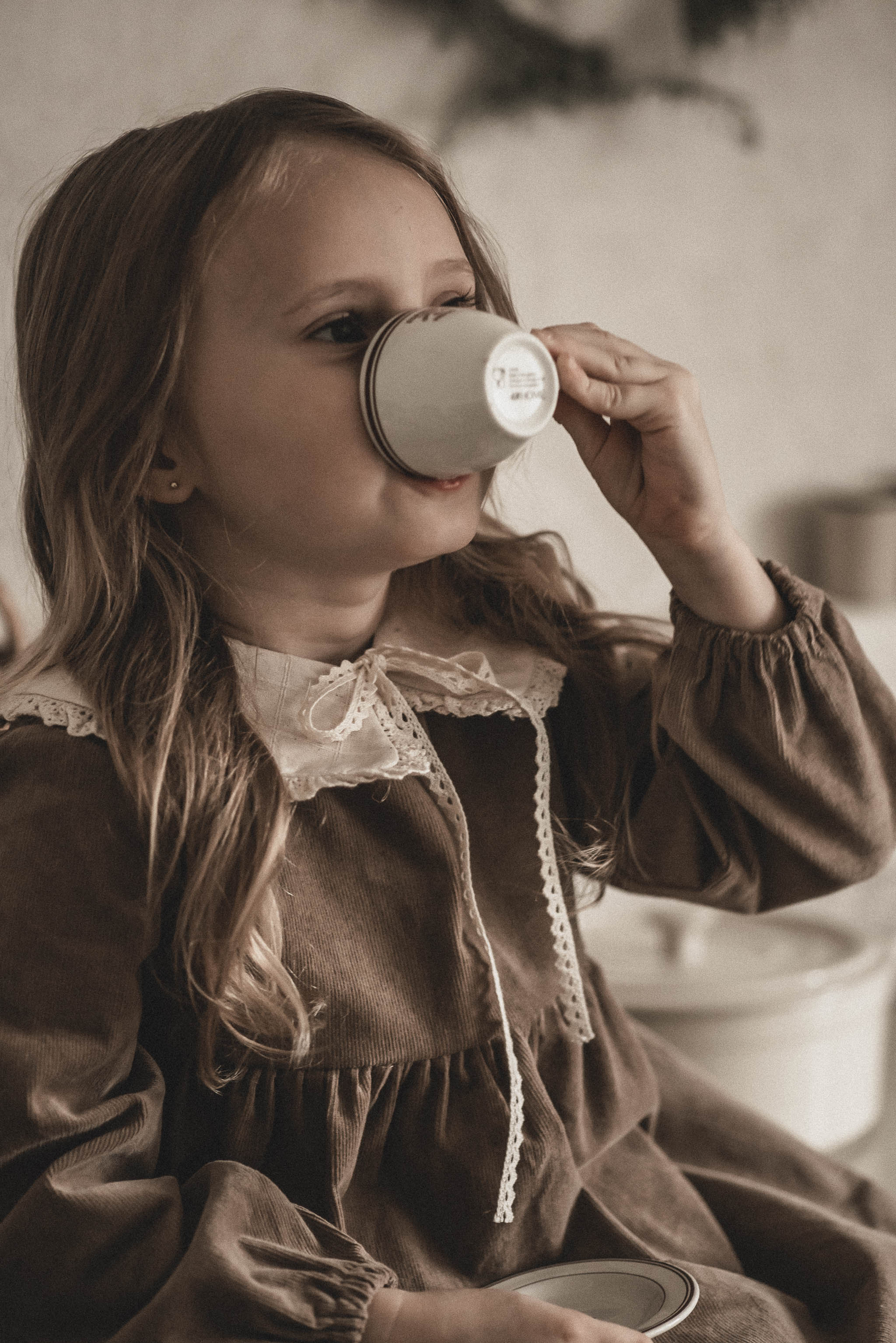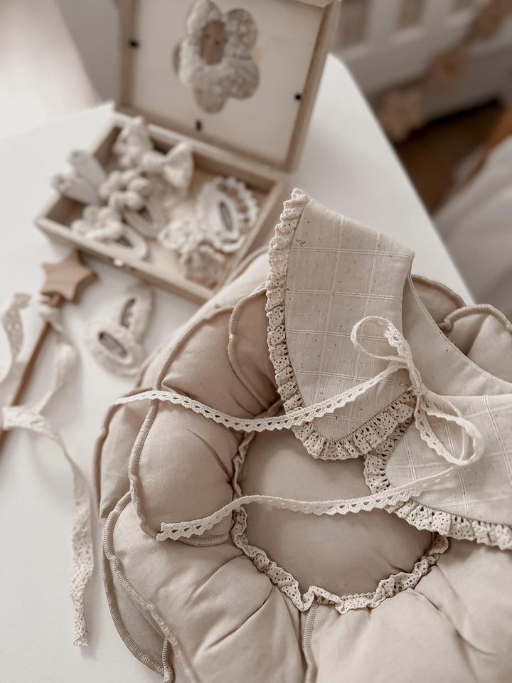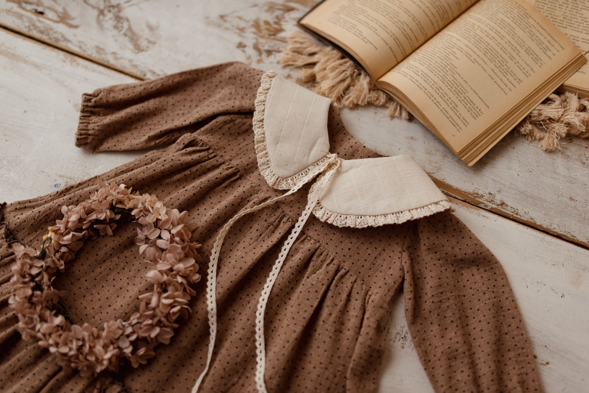 Retro kołnierzyk dla dziewczynki lniany z koronką naturalna kratka zoja