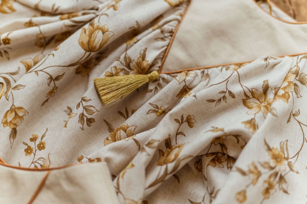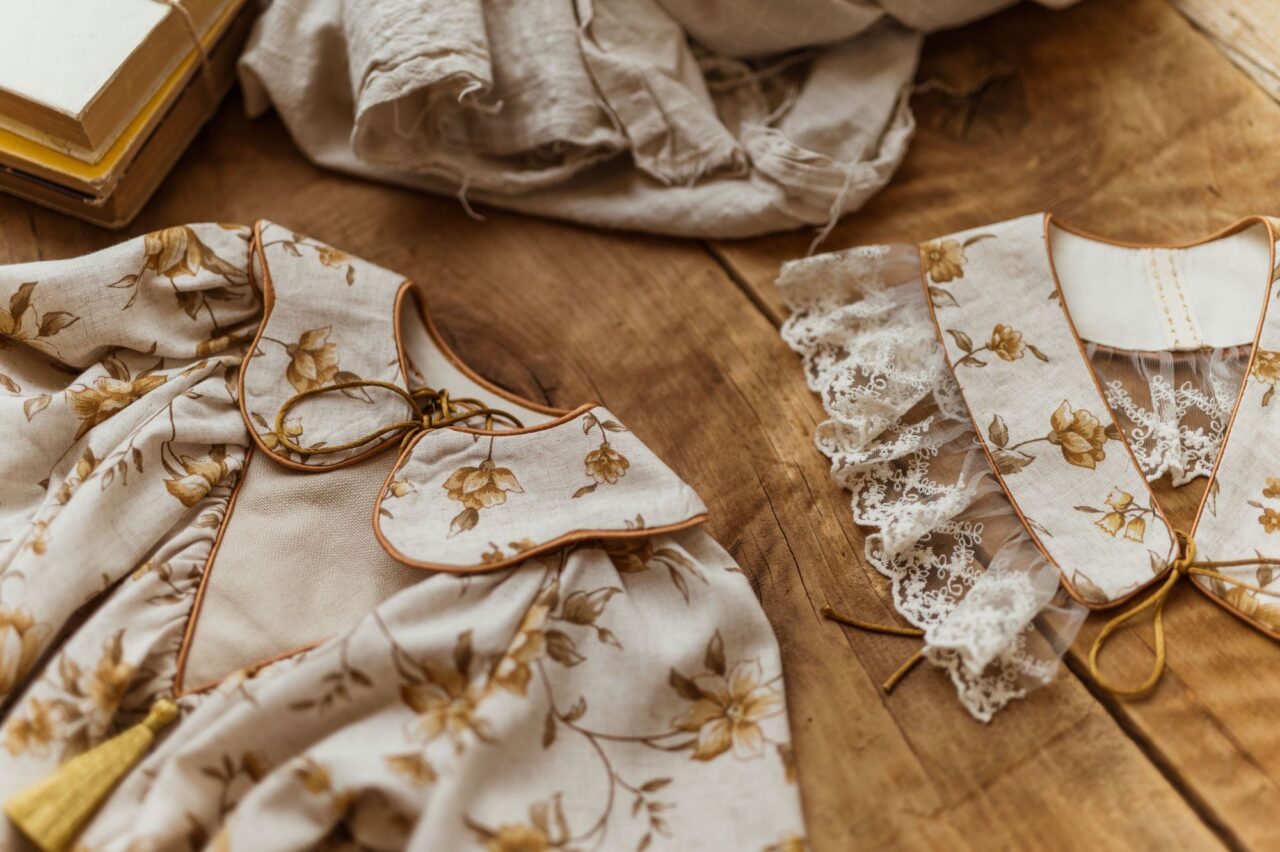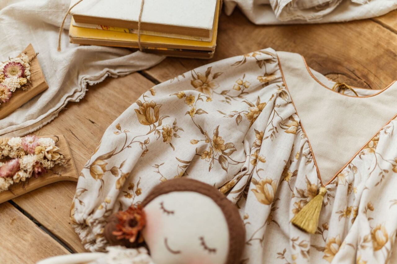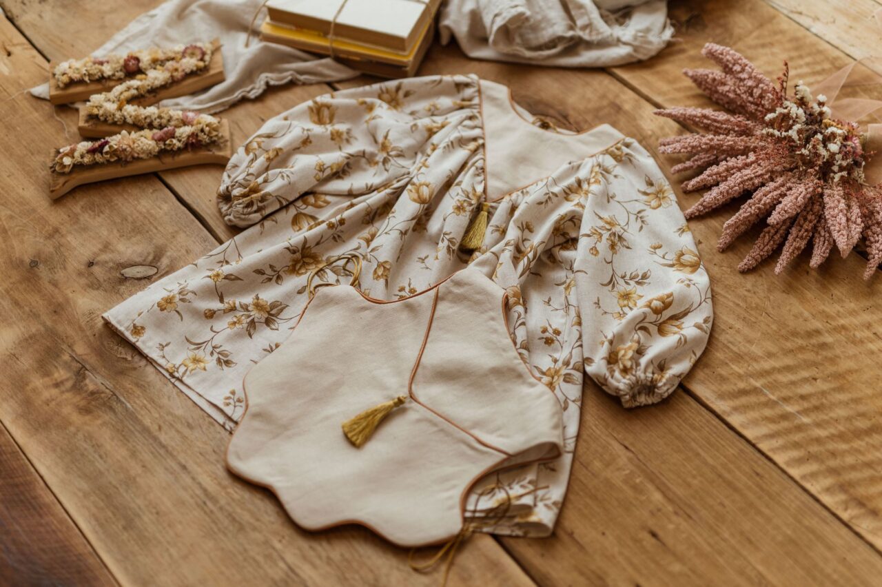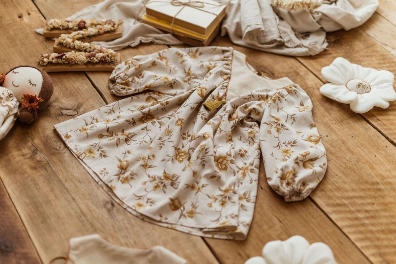 Retro sukienka lniana w kwiatuszki dla dziewczynki Marysia honey