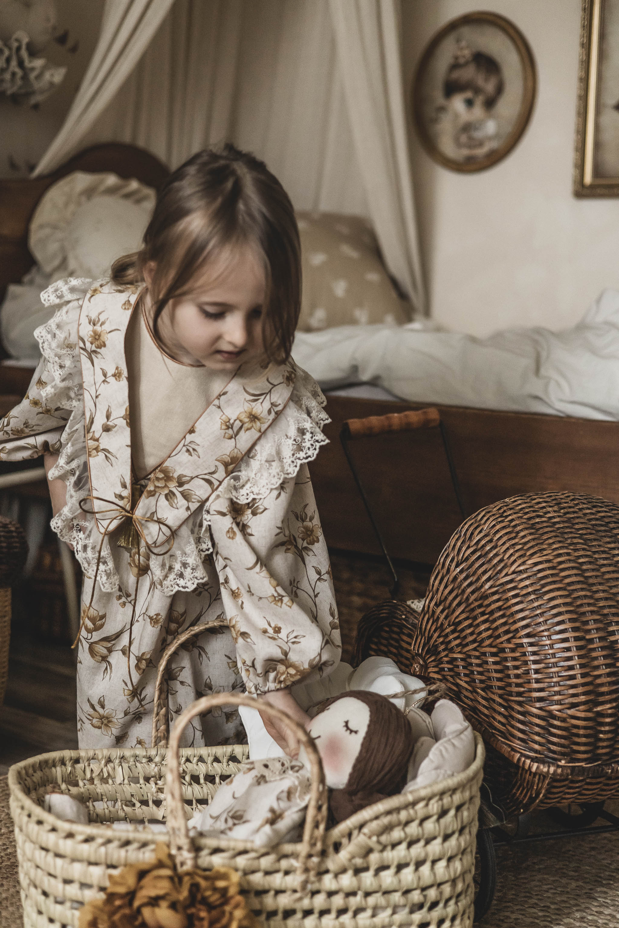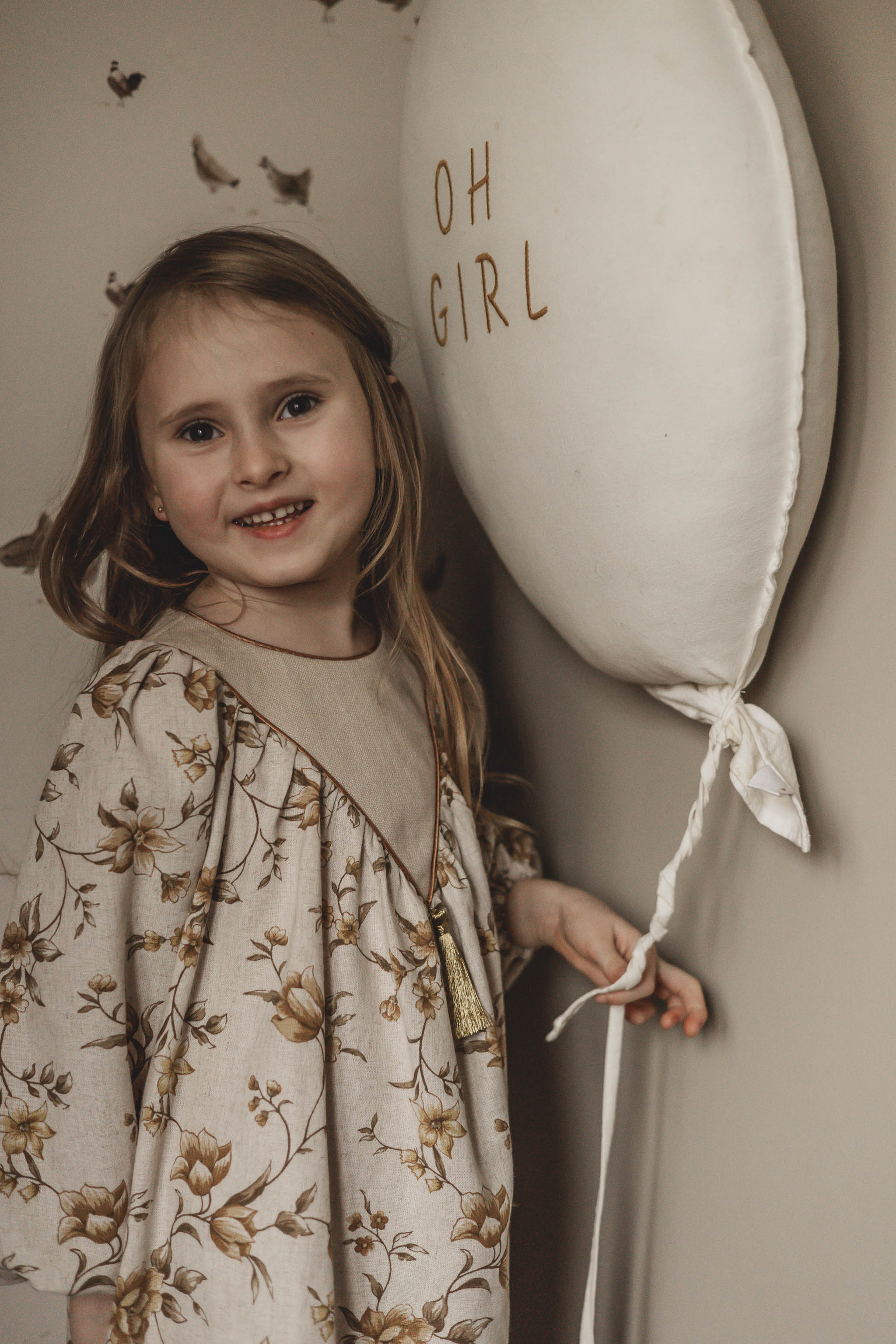 Retro sukienka lniana w kwiatuszki dla dziewczynki 1-4 lat Marysia honey